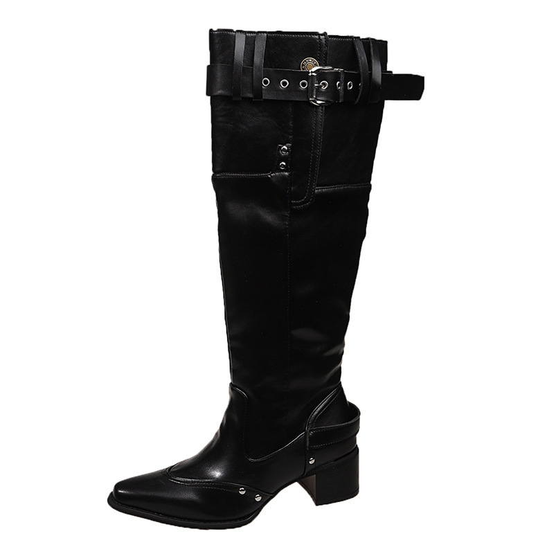 Over-The-Knee Boots for Women 2025 Spring & Fall Apricot Suede Pointed Boots for Women Thick Heel Slimming Look Pleated Boots