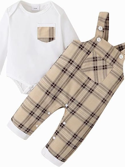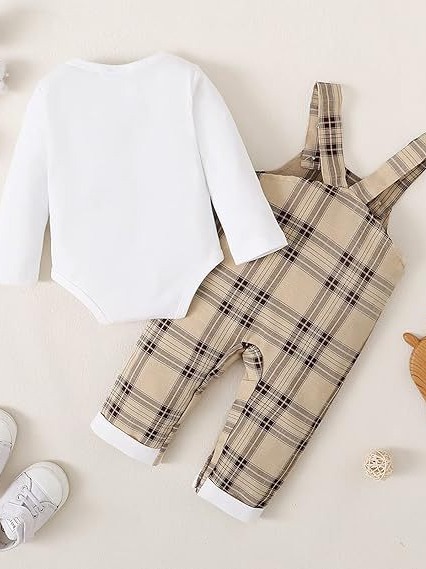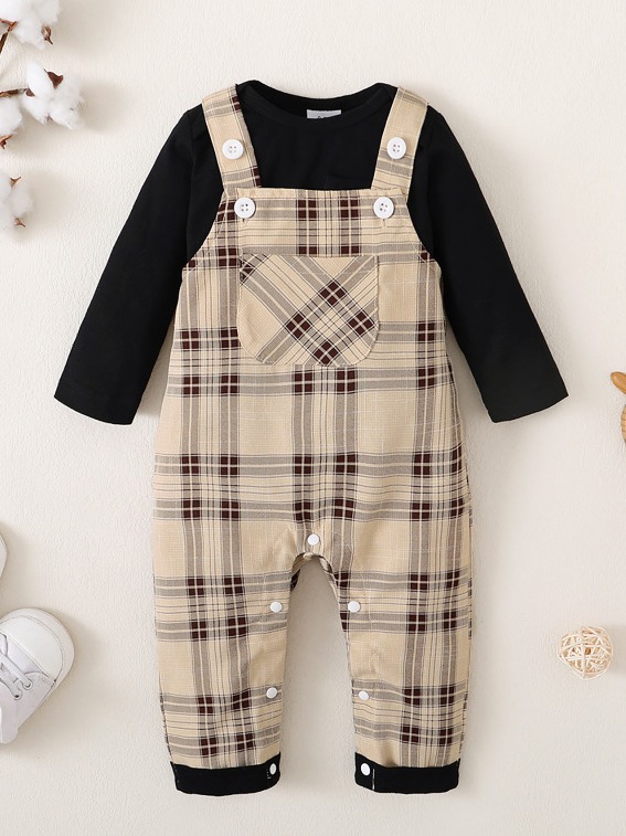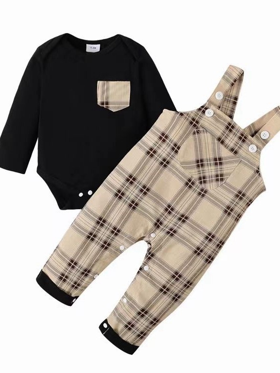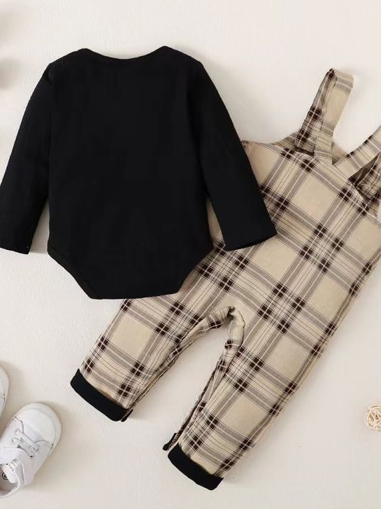 European and American cross-border baby girl plaid overalls long-sleeved romper suit casual baby girl two-piece suit