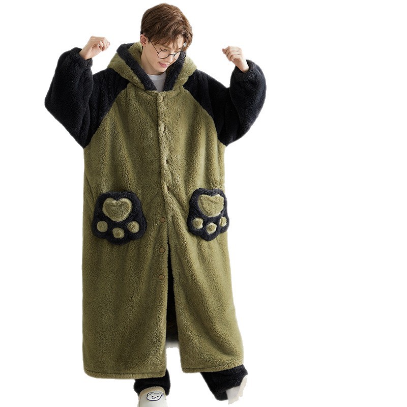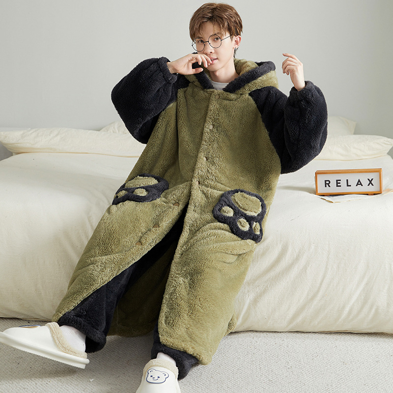Pajamas for Men in Autumn and Winter Coral Velvet Fleece-Lined Thickeneded Flannel Bathrobes Pajamas Pajamas Mid-Length Home Wear Set