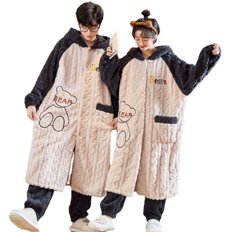 Pajamas for Women Winter Long Coral Velvet Fleece-Lined Thickeneded Couple Bathrobes Flannel Men's Pajamas Home Clothes Outer Wear Soft