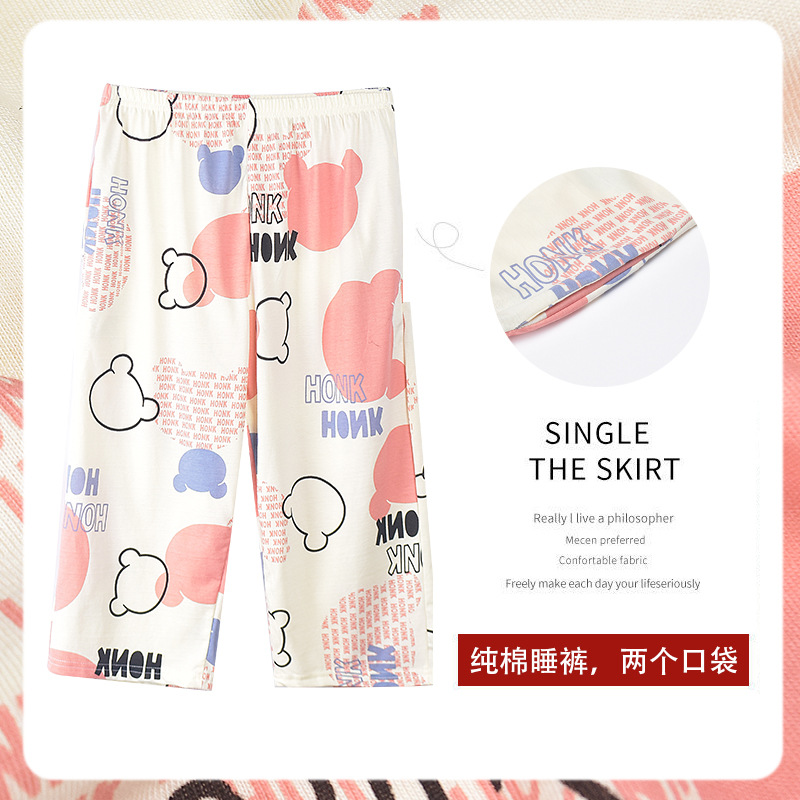 Pajamas Women's Pajamas Pure Cotton Summer New Three-Quarter Pants Single Piece Thin Pure Color Versatile Outer Wear Home Pants for Women