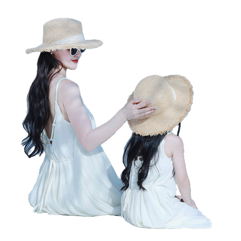Parent-Child Summer Hainan Sanya Yunnan Seaside Vacation Dopamine Mother-Daughter Wear Loose Beach Chiffon Dress