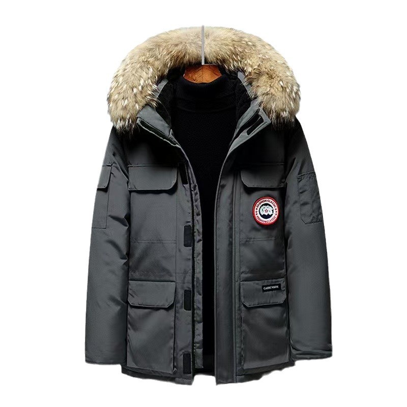 Parker Goose Down Jacket for Men and Women Winter Couple White Duck Down Medium and Long Workwear Large Wool Collar Extremely Cold Jacket Men's Wear
