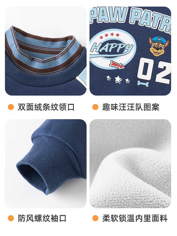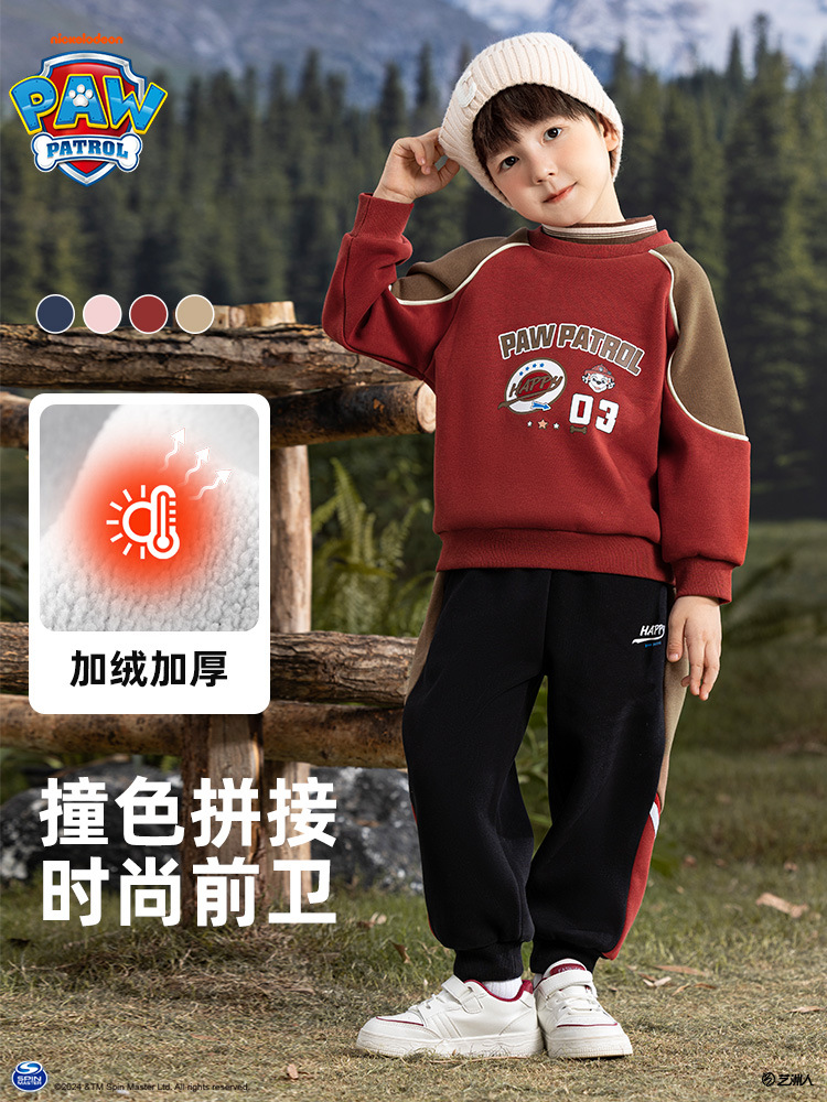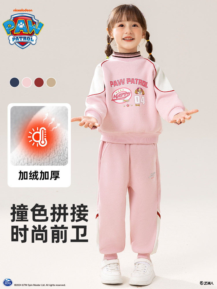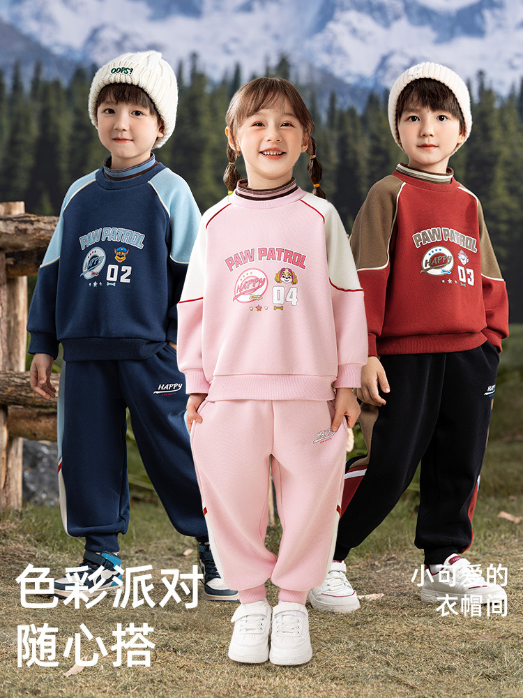 Paw Patrol Kidsren's Suit Autumn and Winter Casual Sports Fleece-Lined Sweatshirt and Sweatpants Fashionable Baby Boy Winter Two-Piece Set