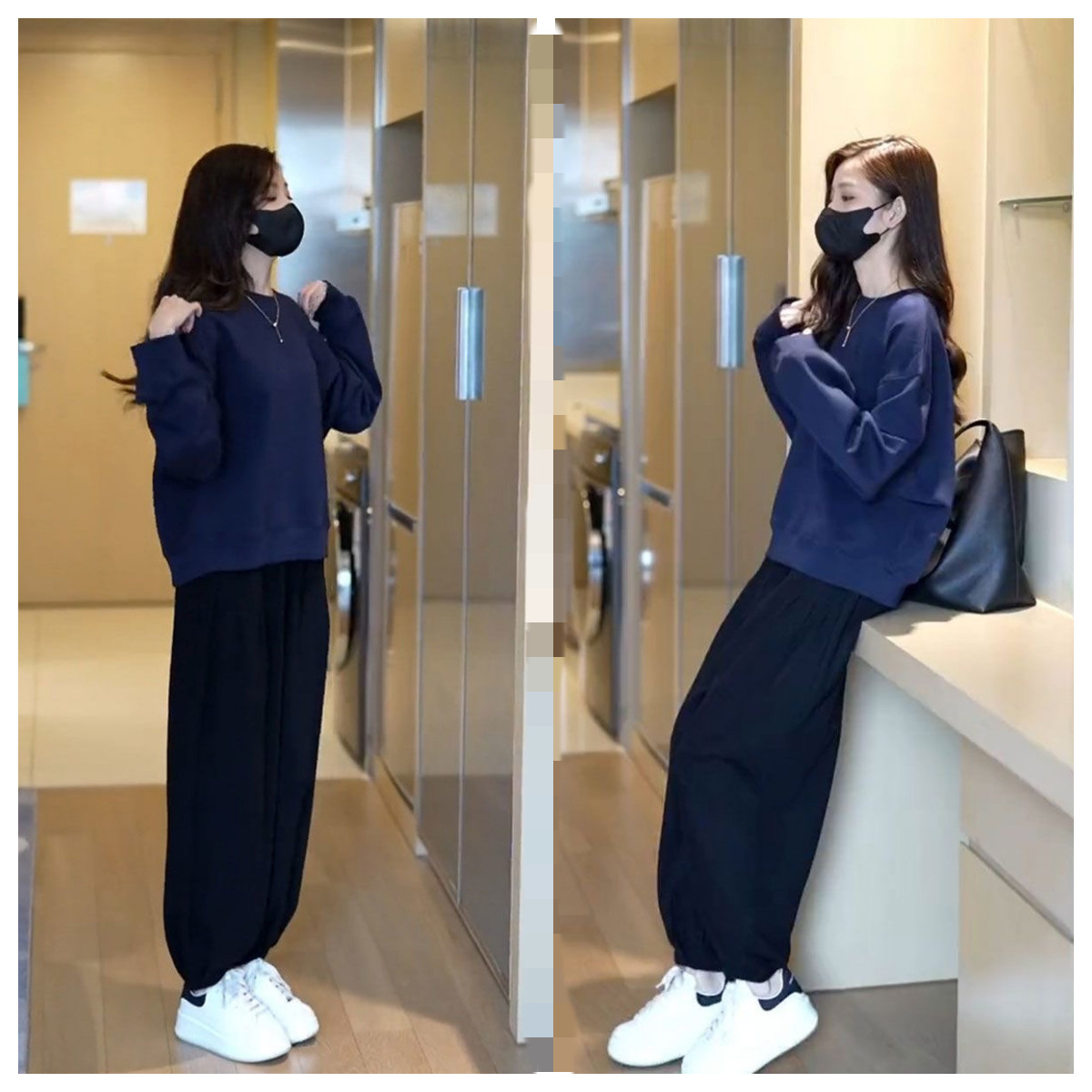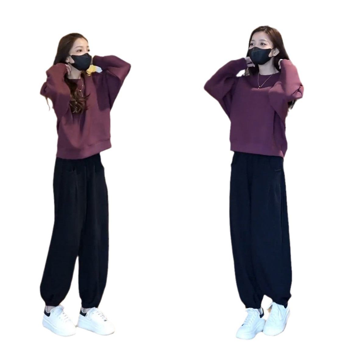 Pear-shaped figure autumn and winter wear exquisite loose harem pants two-piece suit this year's popular sweater suit a set of women