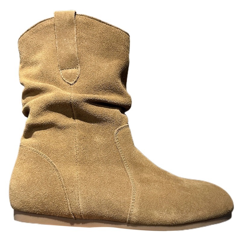 Physical unique son ~ Korean frosted soft bottom pleated short boots women's Maillard with skirt sleeve boken pile boots