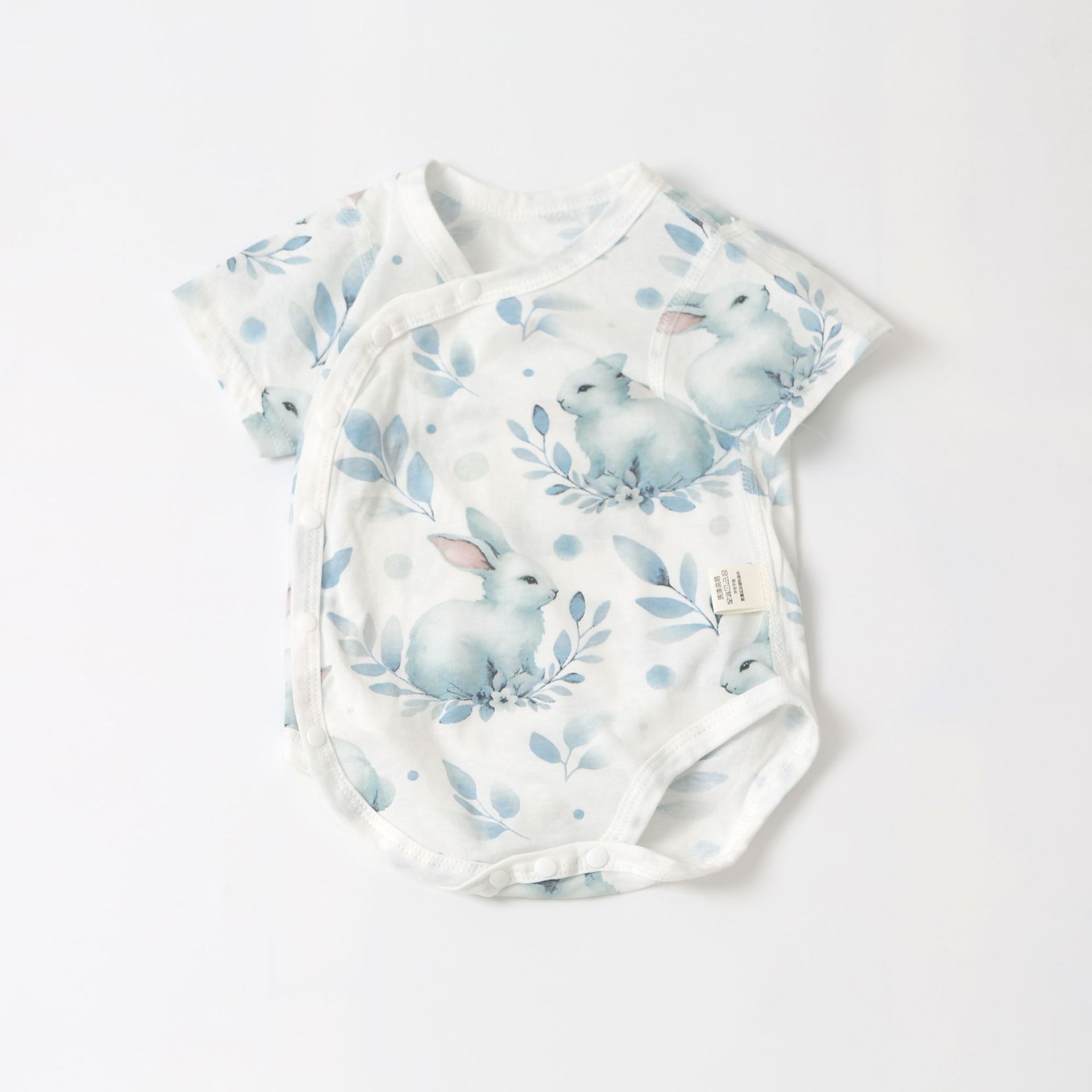 Piggy's Newborn Baby Pure Cotton Short-Sleeved Baby Jumpsuit Infant Jumpsuit Summer Baby Triangle Crawl Suit Thin Section