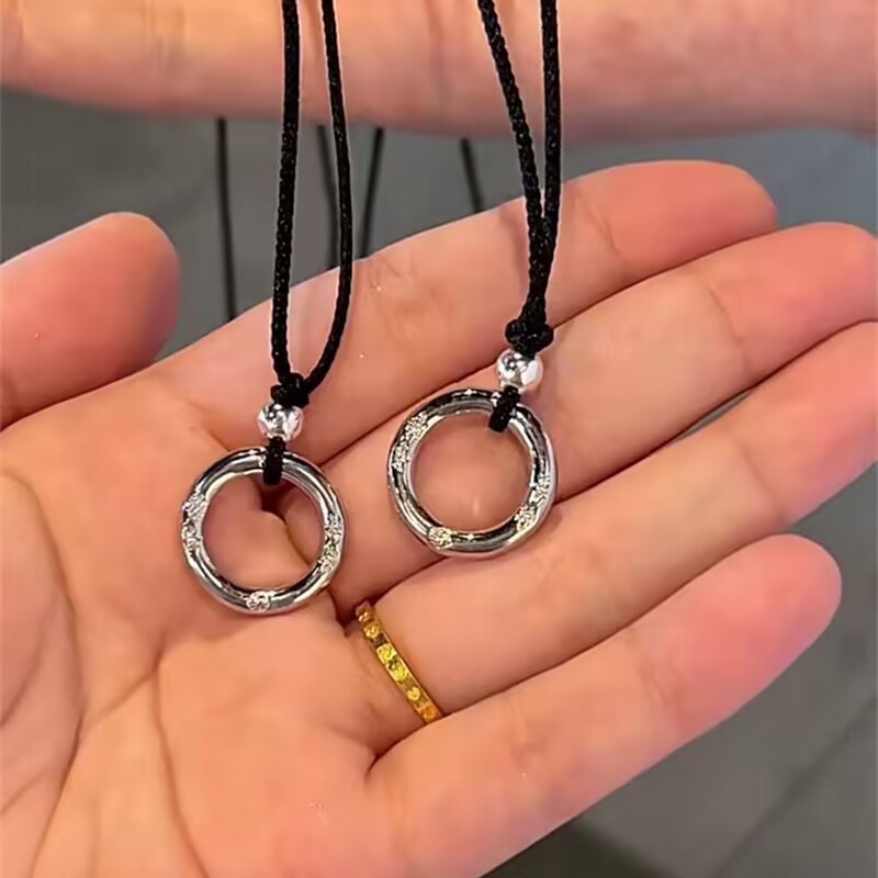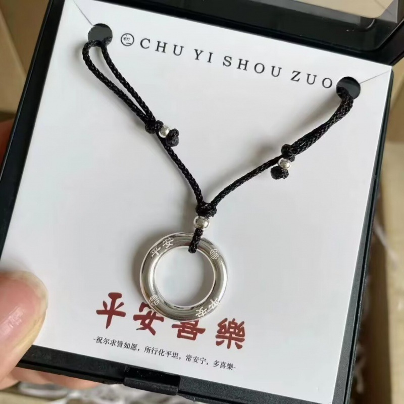 Ping An Happy Couple Necklace Pair of Plain Circle Necklace Woven Pendant Ping An Buckle Student Version Birthday Gift for Men and Women