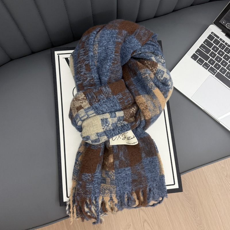 【Plaid Collection】Tonglu Scarf Korean Style High-End Feel Women's Autumn and Winter Versatile Shawl Warm Neck Scarf for Men