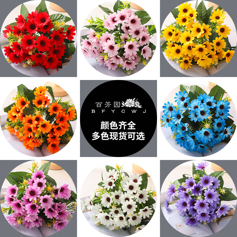 Plastic Flower Artificial Flower Sunflower Chamomile Daisy Small Wild Chrysanthemum Artificial Flower Small Handle Finished Bouquet Decorative Flower