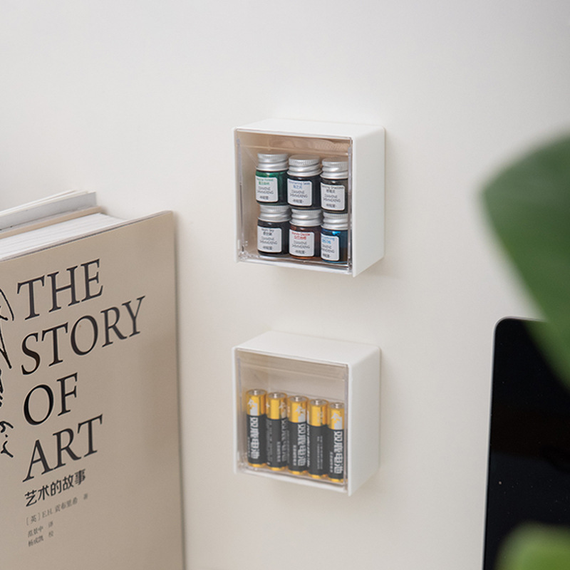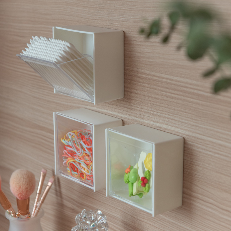 Plastic Folding Storage Box Multifunctional Wall Hanging Finishing Box Storage Rack Cosmetic Cotton Storage Dustproof Cotton Sticker Box with Lid
