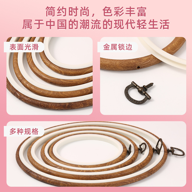 Plastic Imitation Wood Grain Cross Stitch Embroidery Stretcher Adjustable Multi-Specification Retro Special-Shaped Embroidery Stretcher DIY Embroider Tool Embroidery Stretcher