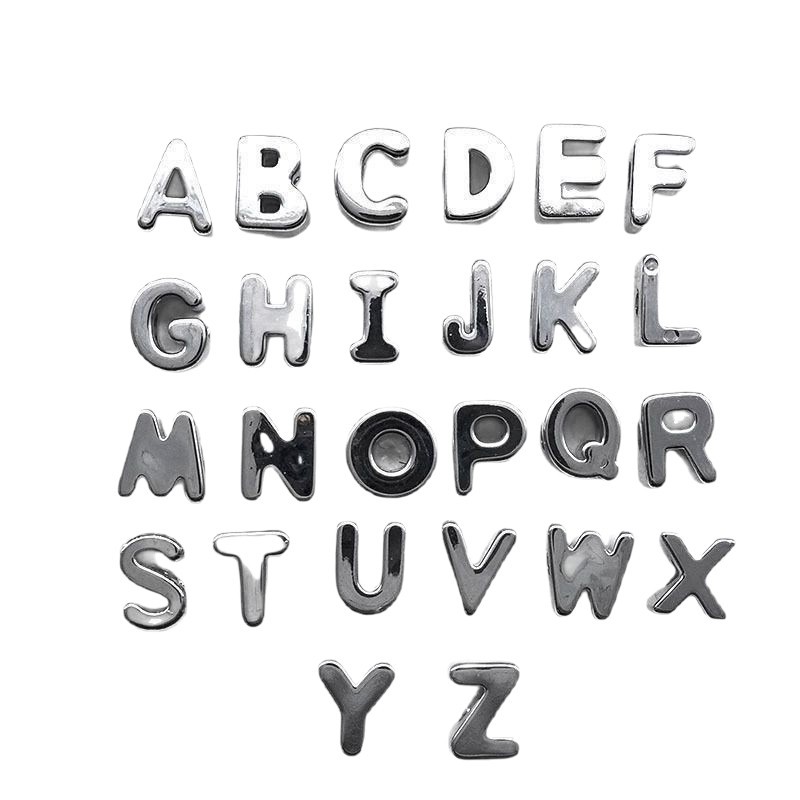 Uv-Plated Silver Acrylic Letters and Numbers Casual Shoe Charms Phone Chain Beads DIY Handmade Bag Accessories Wholesale