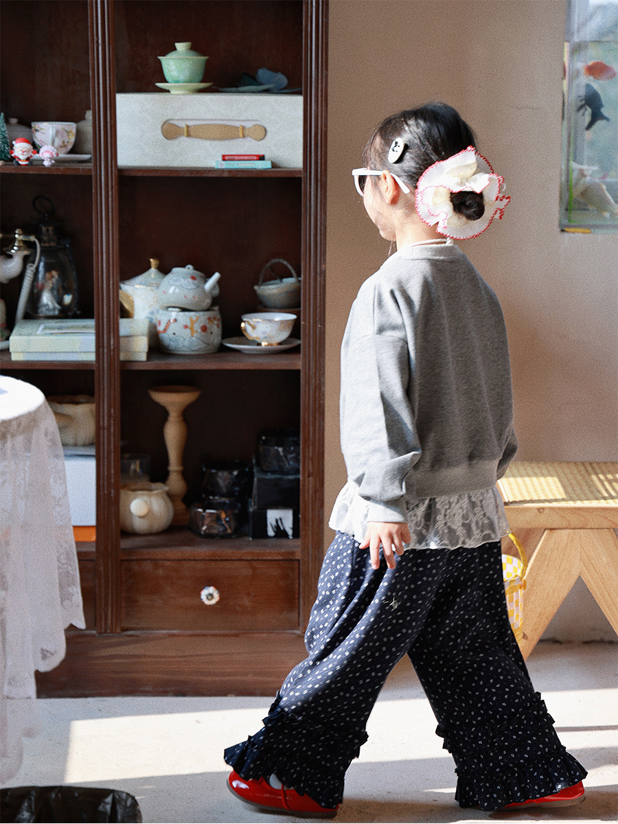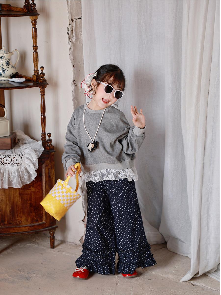 Play together in-laws spring mother and daughter lace stitching sweater sweet top with floral wooden ear trousers