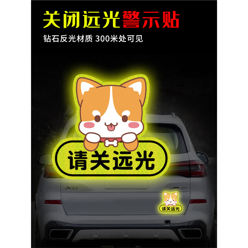 Please Turn Off the High Beam, Strong Reflective Car Stickers to Keep the Distance between Cars, Magnetic Car Stickers to Block Scratches, High Beam Dog Nemesis