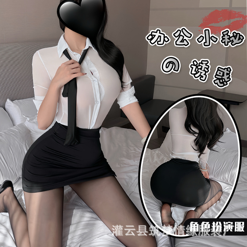 Plus size sexy lingerie role-playing female secretary uniform suit white shirt tight sheath skirt slimming tight