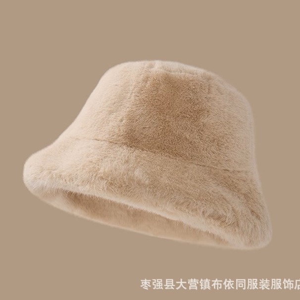 Plush fisherman hat women's autumn and winter warm all-match fashion plush fisherman hat thickened big head circumference small face