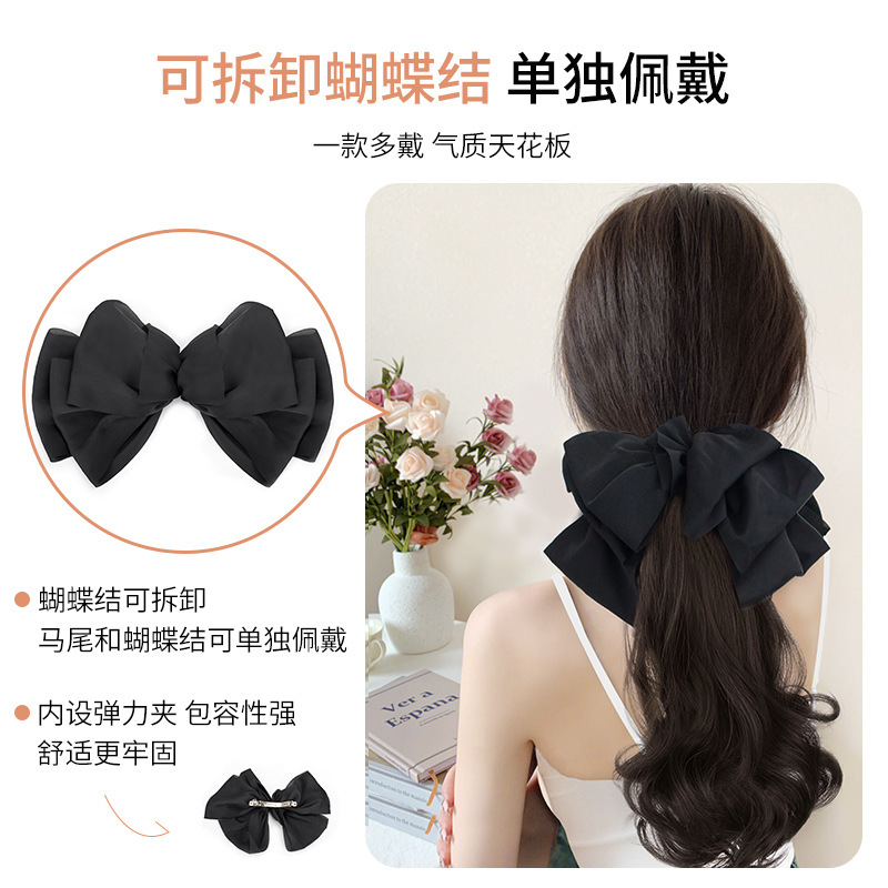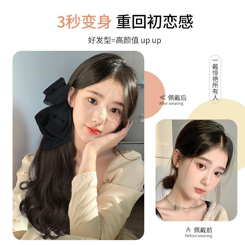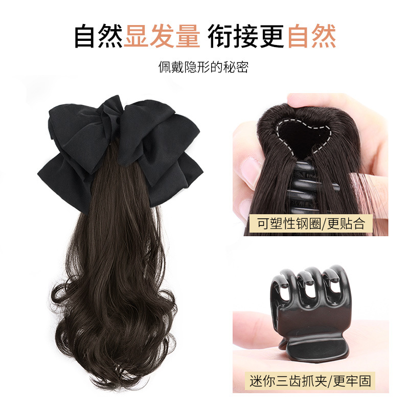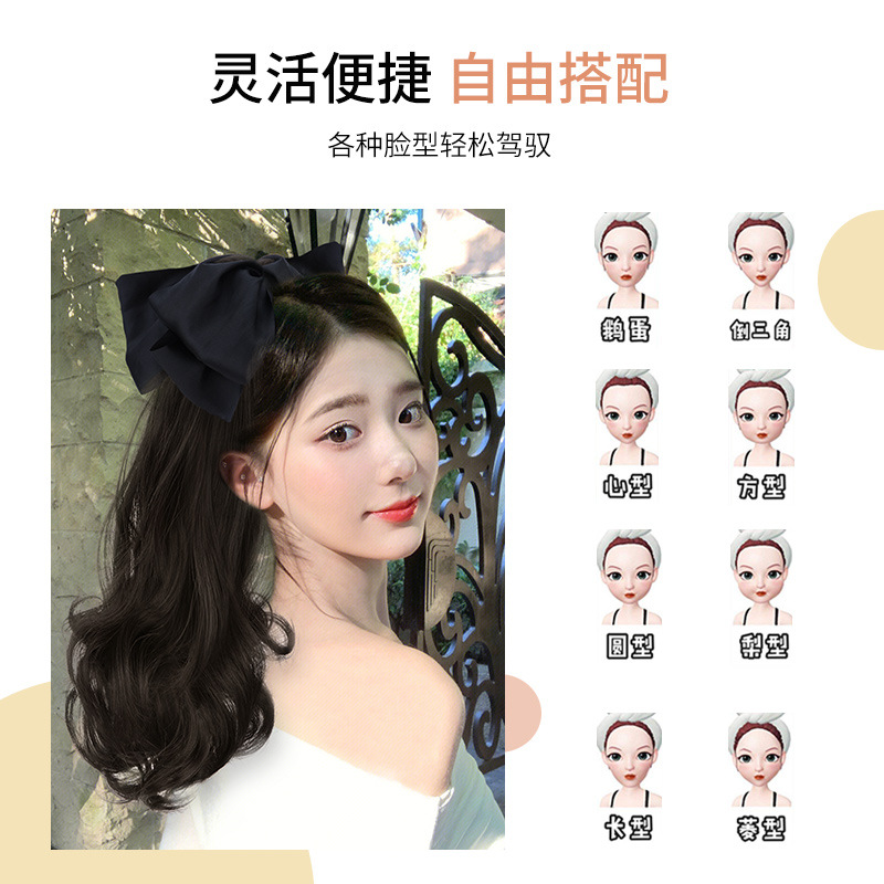 Ponytail Wig Women's Long Curly Hair Grab Clip Artificial Hair High Ponytail Cyber Celebrity Sweet Bow Low Braid Fake Ponytail