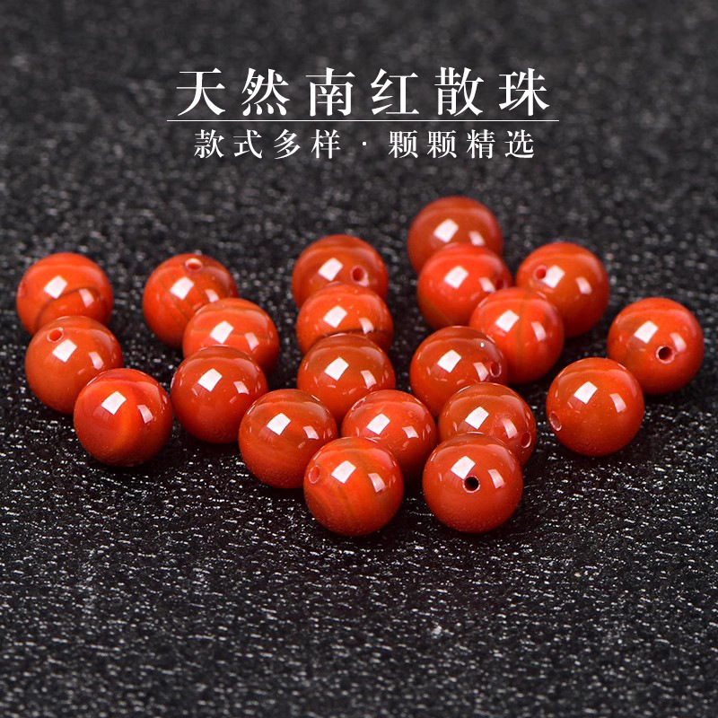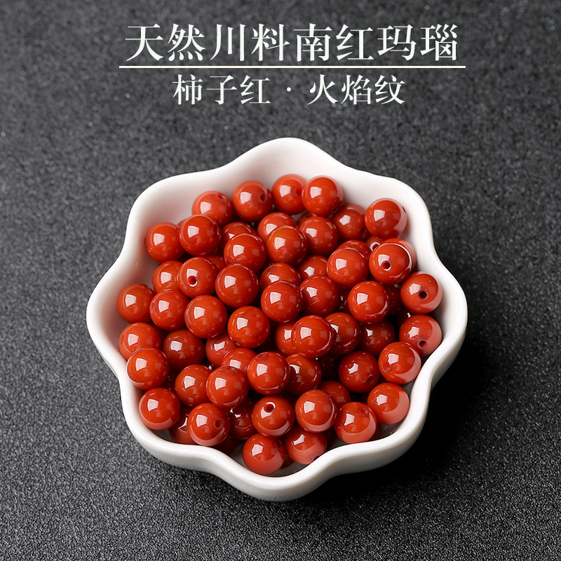 Preferred 7A natural south red agate loose beads Sichuan material full meat persimmon red string flame pattern diy handmade bracelet