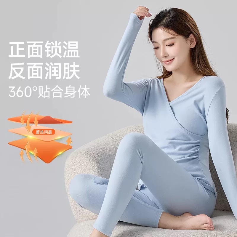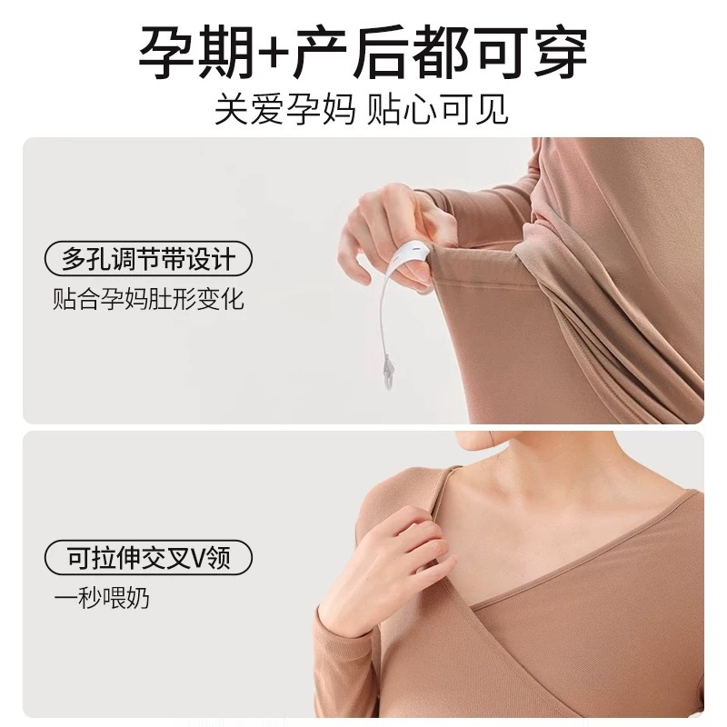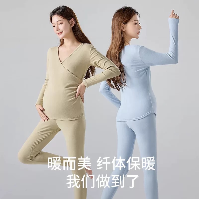 Pregnant Women's Autumn Clothes and Pants Postpartum Maternal Maternity Maternity Nursing Nursing Autumn and Winter Pregnancy De Velvet Pajamas Thermal Underwear suit