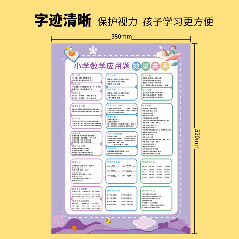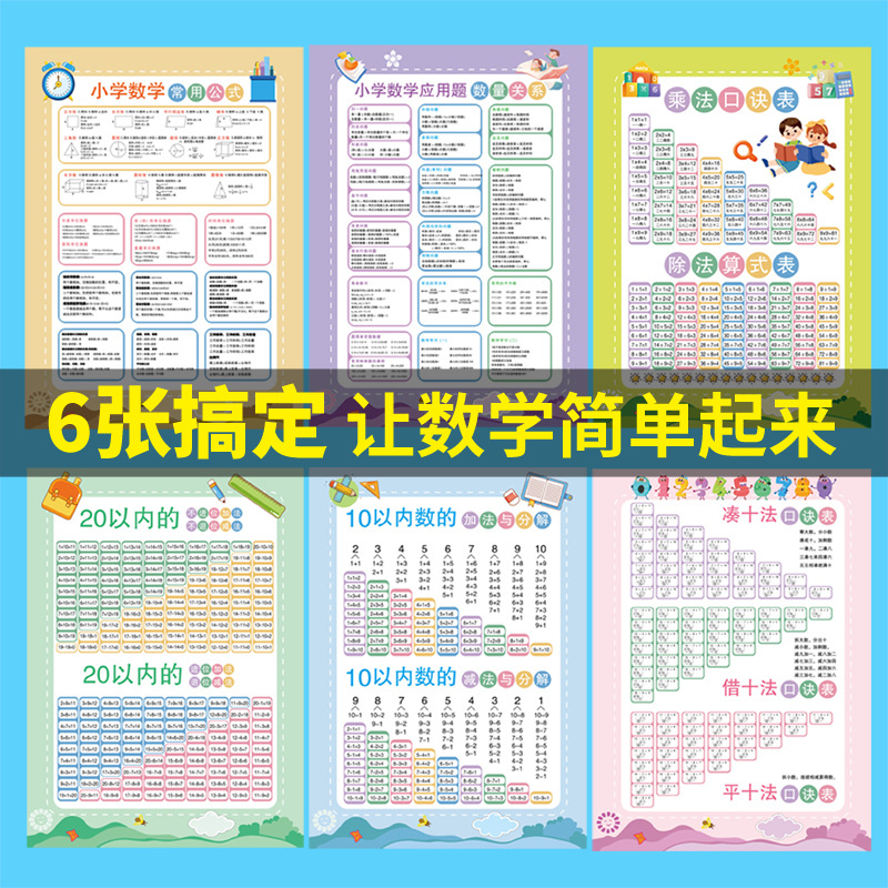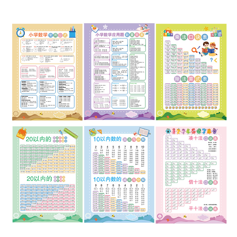 Learning Wall Chart for Primary School Students, Math Formula Wall Chart, Multiplication Table Knowledge Wall Sticker Illustration for First Grade