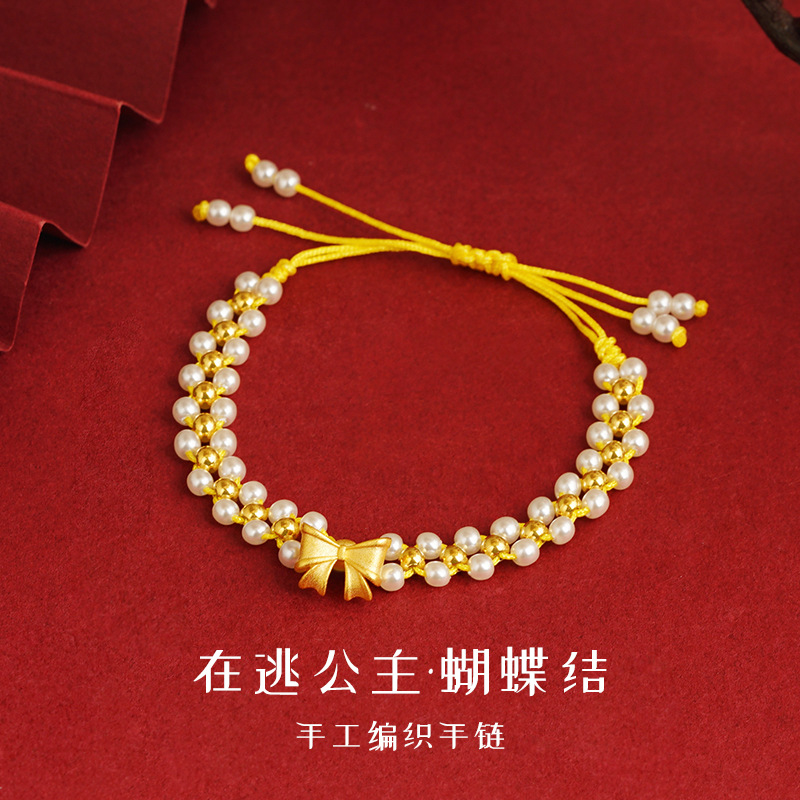 Princess Escape Bow Rope Chain Adjustable Women's Bracelet Synthetic Gem Hand-woven Sweet All-match Exquisite