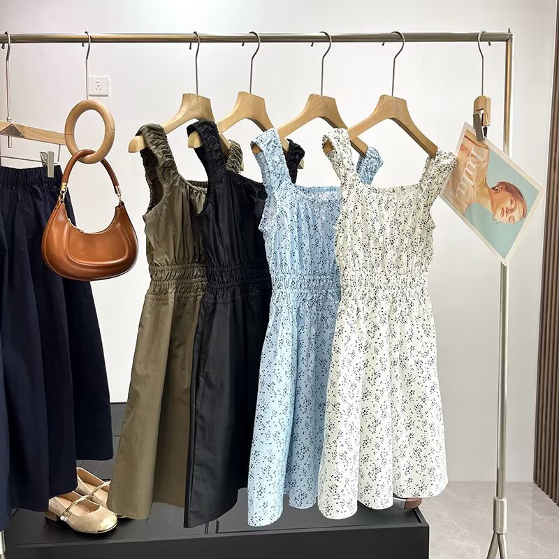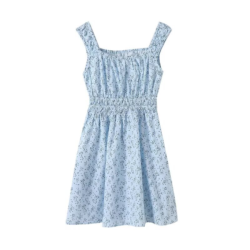 Printed Pleated Mini Pleated Printed dress Sleeveless Wide Shoulder Strap Skirt 475807/477842