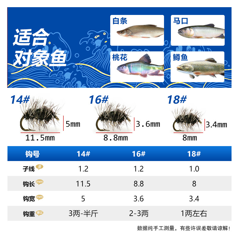 Production and wholesale Griffith floating water fly hook fly bait fishing White Horse Mouth rainbow trout Road sub-bait feather binding system