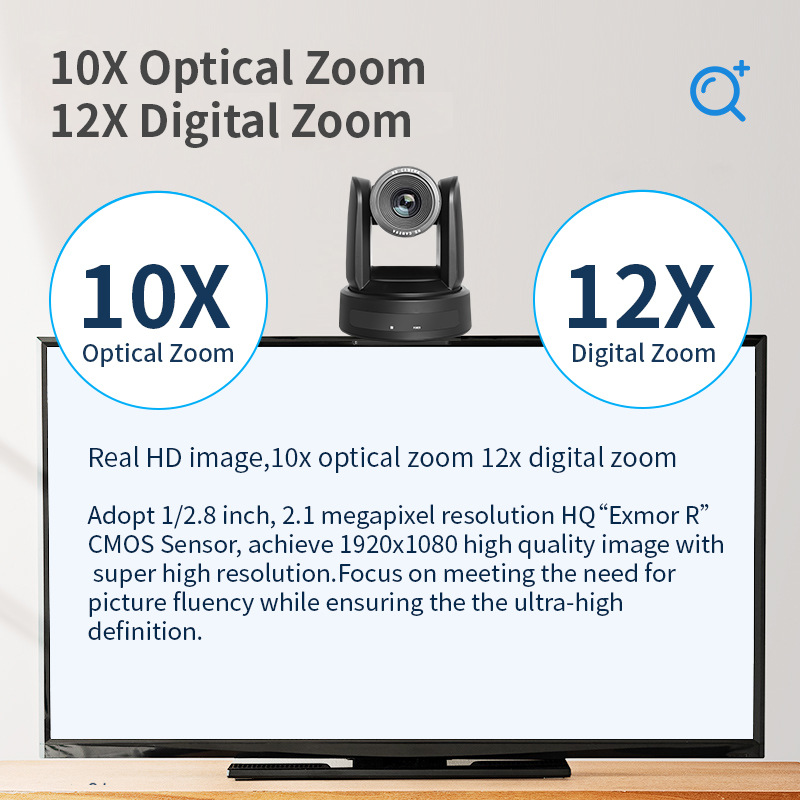 Video Conferencing PTZ Camera 10x Optical Zoom Live 1080P60 Frame HDMIUSB Webcam