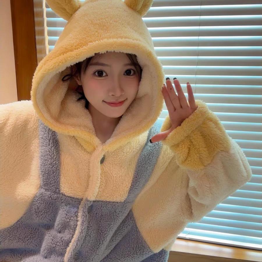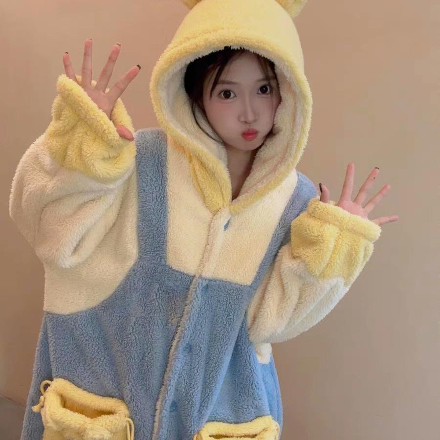 Puff Bear Pajamas Women's Autumn and Winter Coral Fleece Nightgown Winter Thickened fleece-lined Cute Flannel Bathrobe Home Clothes