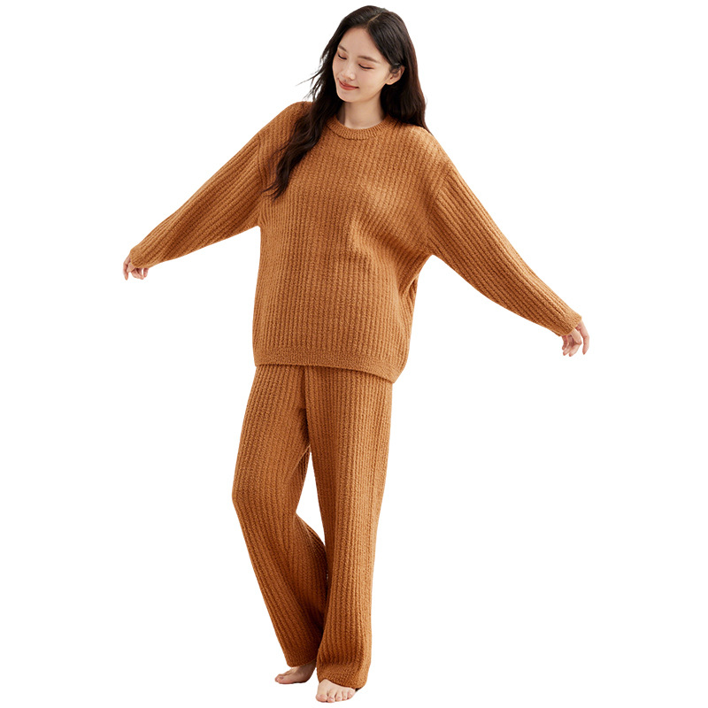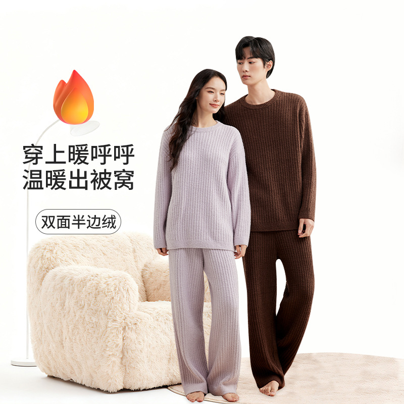 Pullover Ribbed Half-Velvet Pajamas for Women, Thickened and Warm, Autumn and Winter Men's Loungewear, Couple Style