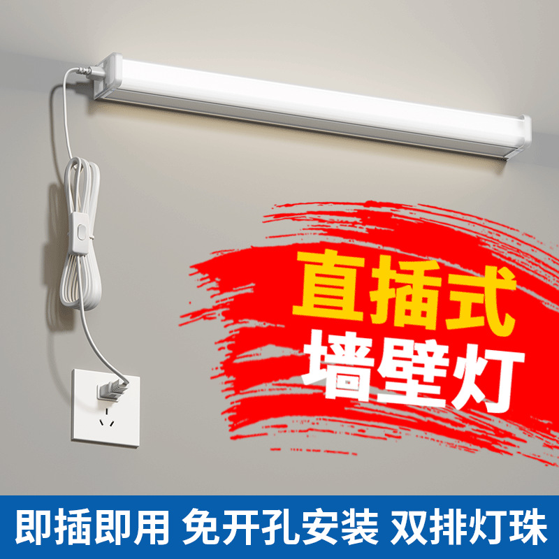 Light Tube, No-Drill Plug-In Led Strip Light with Switch, Indoor Fluorescent Tube, Dormitory Desk Lamp, Ultra-Bright Integrated