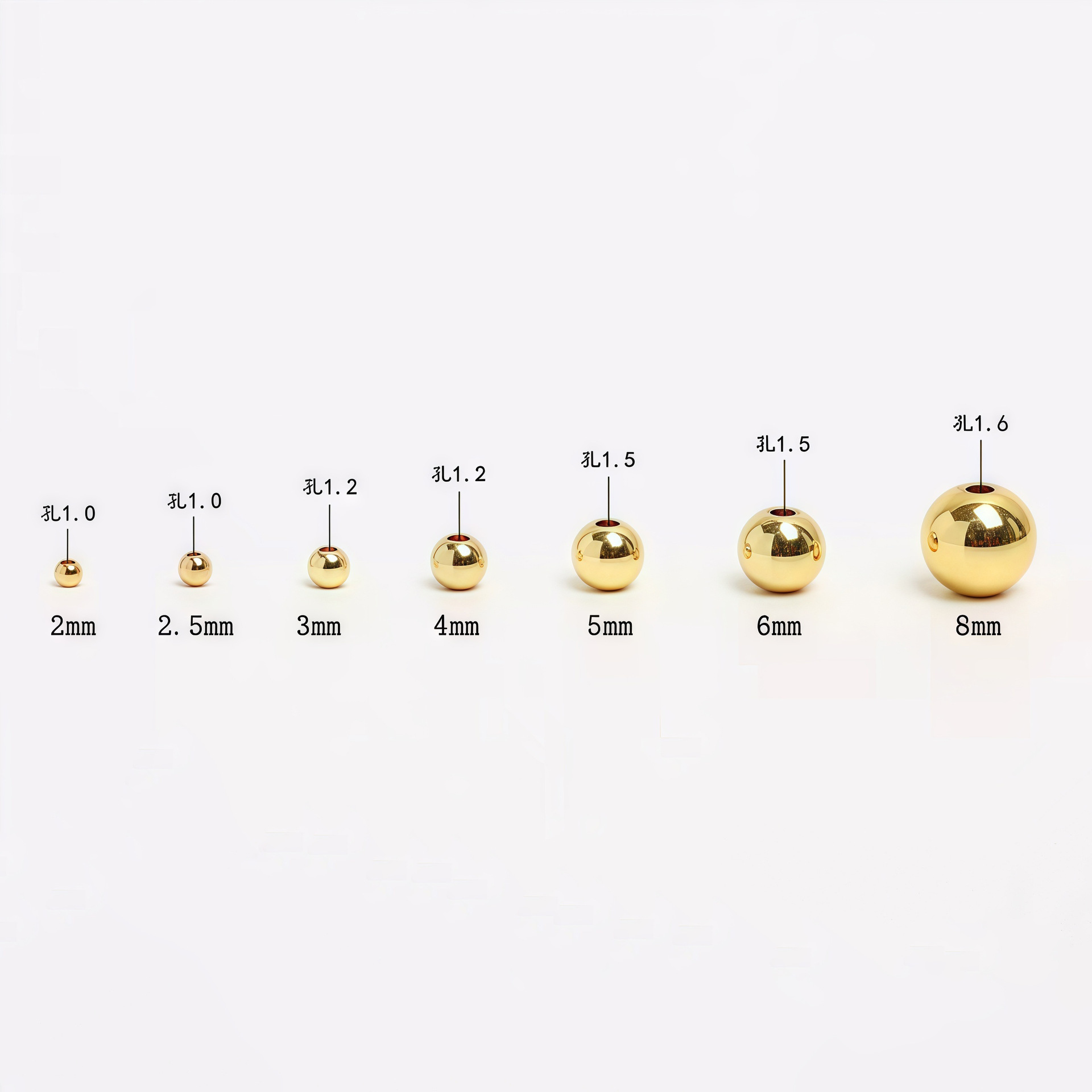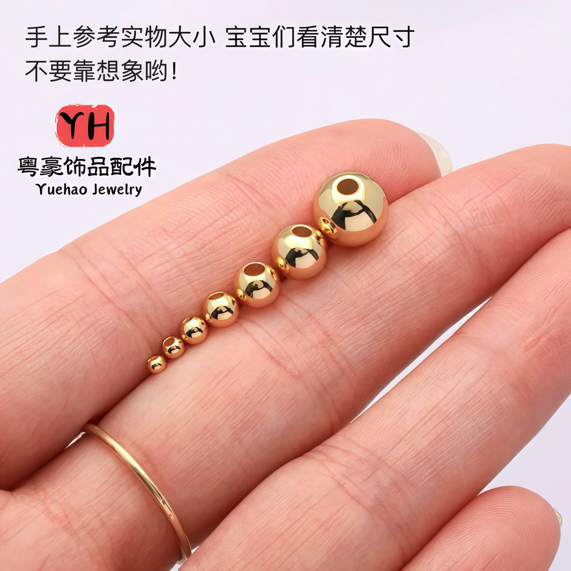 Pure Copper Plated 18K True Gold Color Preservation Bead Gold Plated Round Bead Bracelet Necklace Bead DIY Handmade Material Jewelry Accessories
