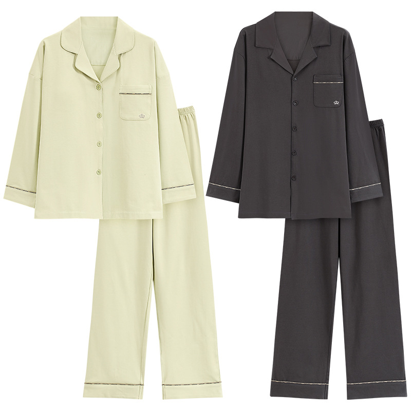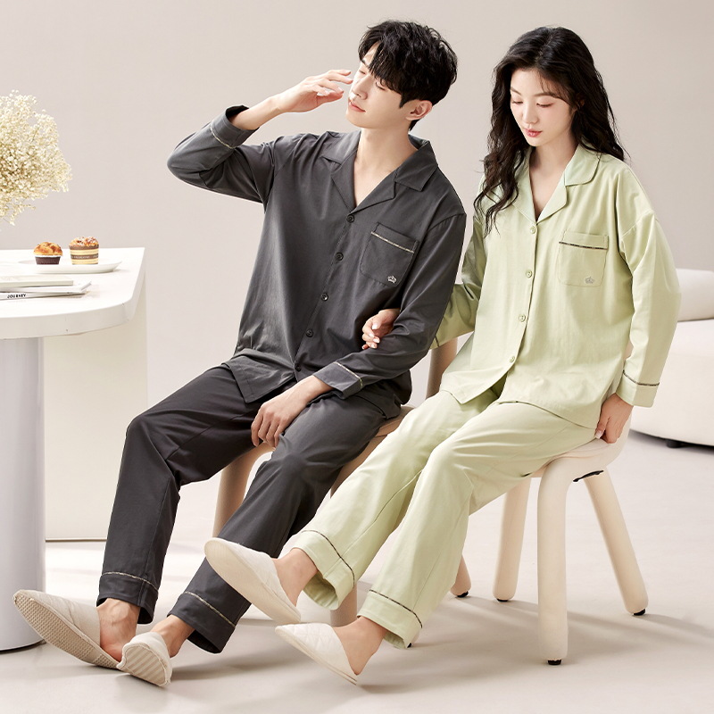 Pure Cotton Couple Pajamas Autumn New Long Sleeve Trousers plus size Spring and Autumn Women's Outwear Men's Home Clothes suit