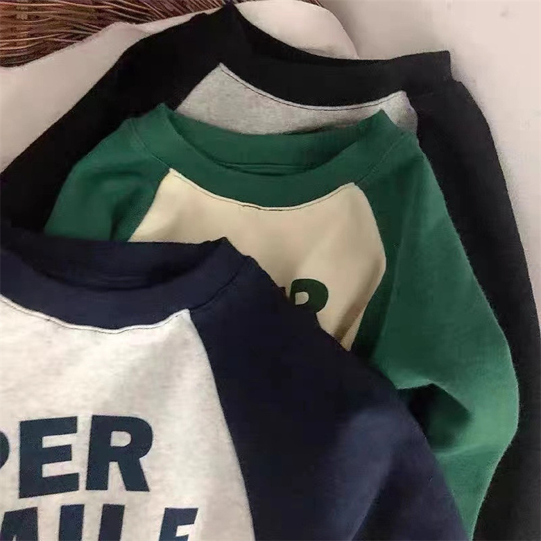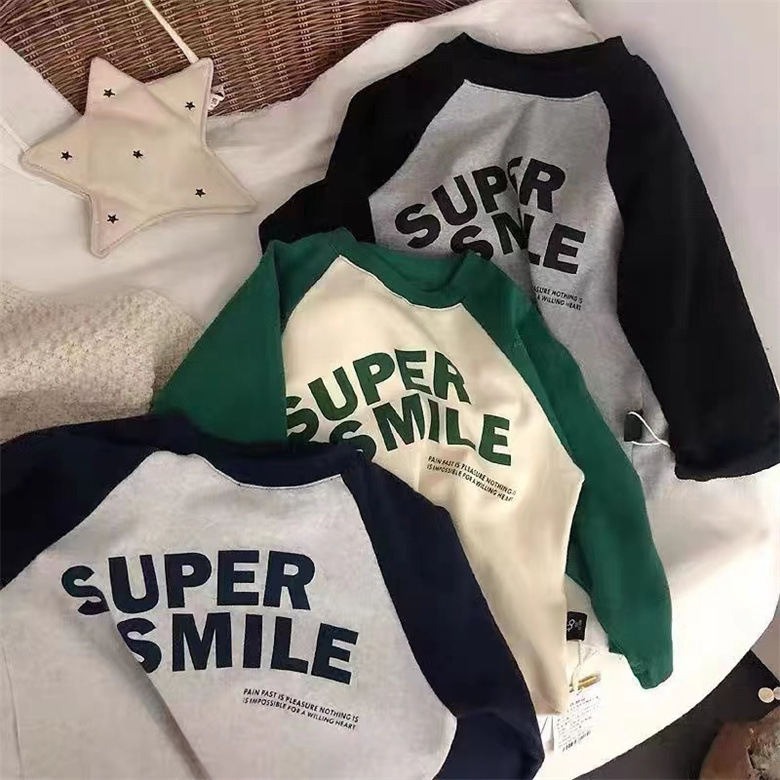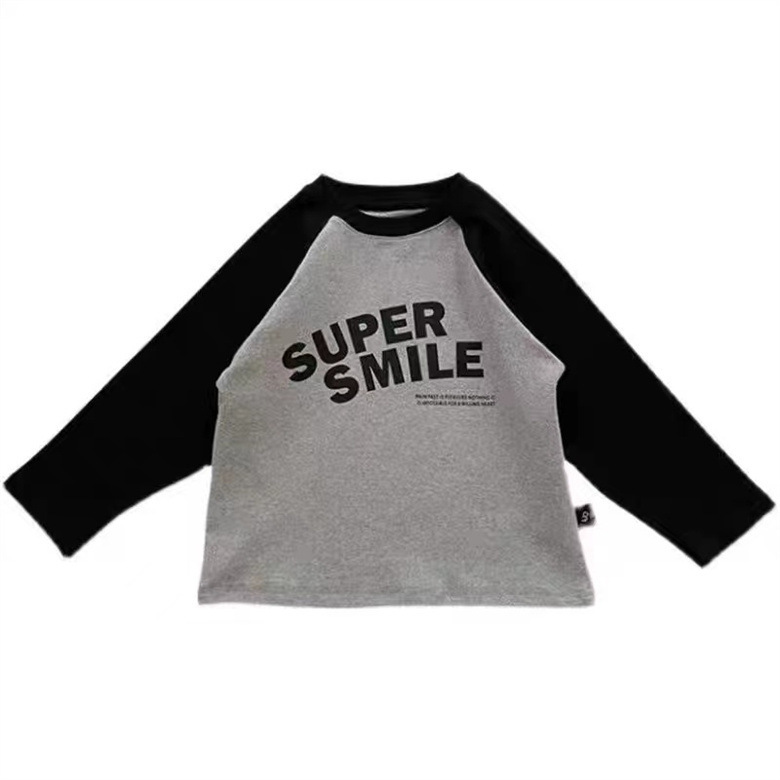 Pure Cotton Korean Style New Kidsren's Spring Tops for Men and Women, Trendyy Letter Printed T-Shirts, Long-Sleeved Clothes for Small and Medium-Sized Kidsren
