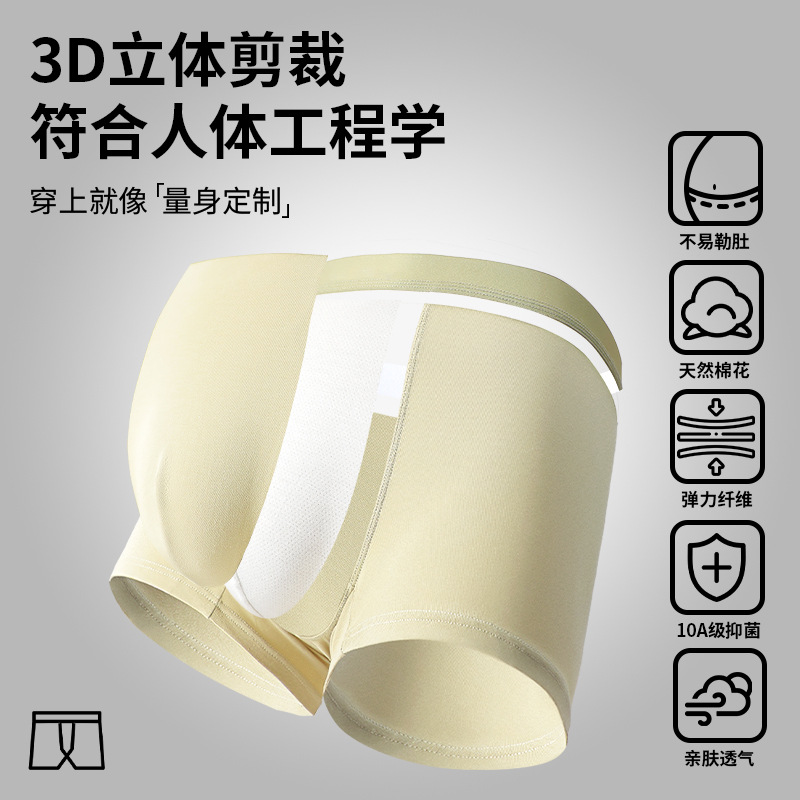 Pure Cotton Men's Underwear, Mid-Waist Seamless Boxer Briefs, 10A Antibacterial Crotch, Summer Sweat-Absorbent and Breathable Men's Boxer Shorts