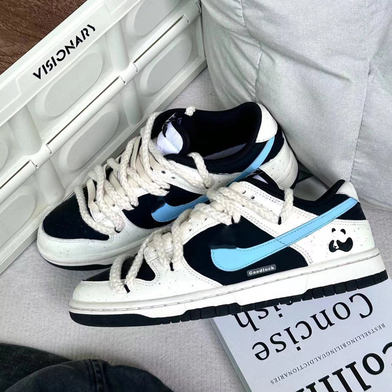 Pure Original Dunk Blueberry Cheese Red Panda Splash Ink Distressed Hemp Rope Deconstructed Low-Top Sneakers Couple Casual Sports Shoes