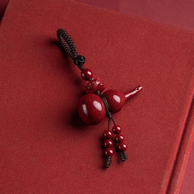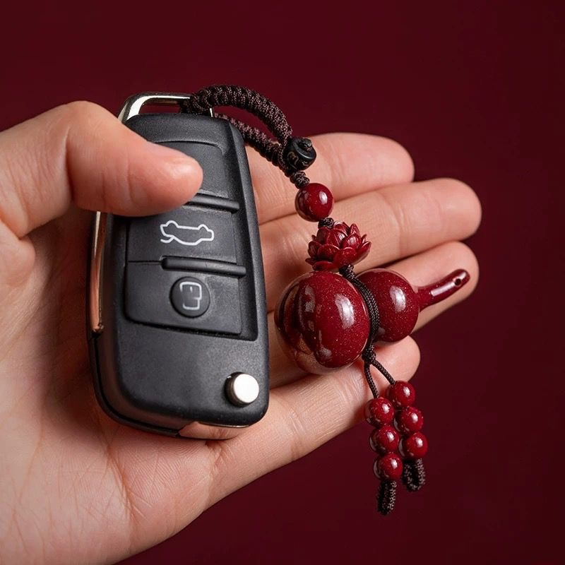 Purple gold sand cinnabar gourd pendant keychain this life year low content cinnabar lotus gourd keychain