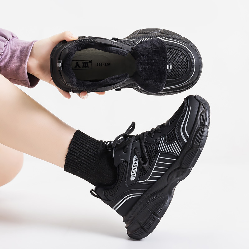 Purple Torre Shoes Women's Winter fleece-lined All-match Students Thick-soled Casual Sports Running Shoes Warm Cotton Shoes 2776