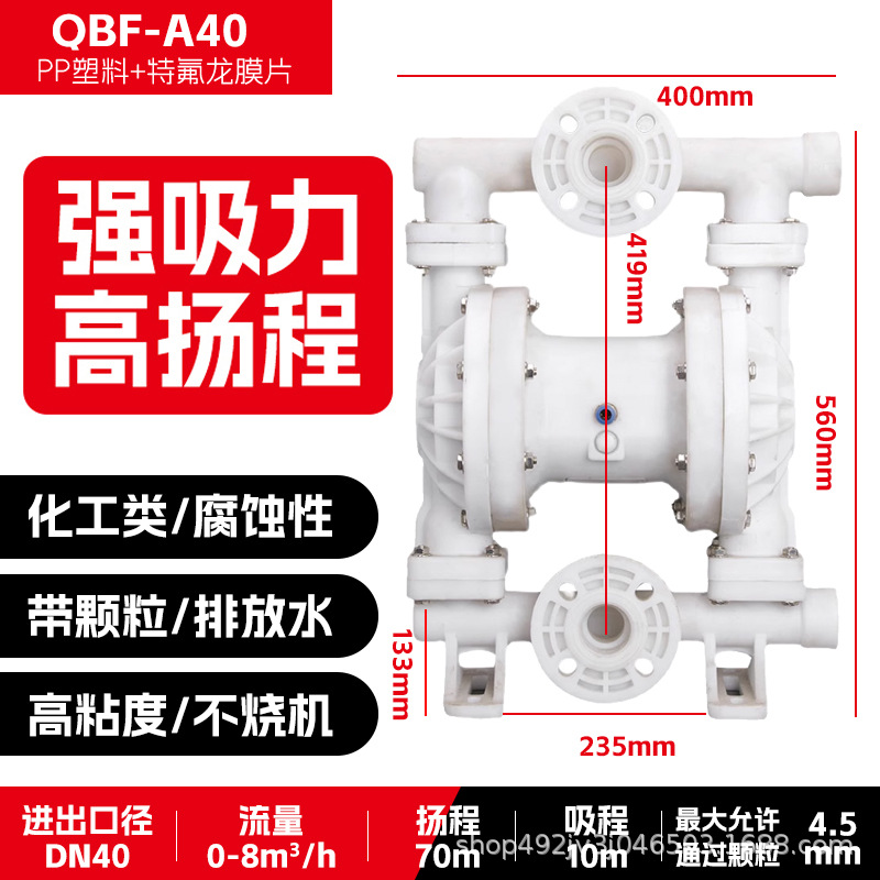 QBF Pneumatic Diaphragm Pump PP Engineering Plastic Acid and Alkali Resistant Corrosion Resistant Self-priming PVDF Teflon Glue Sewage Pump