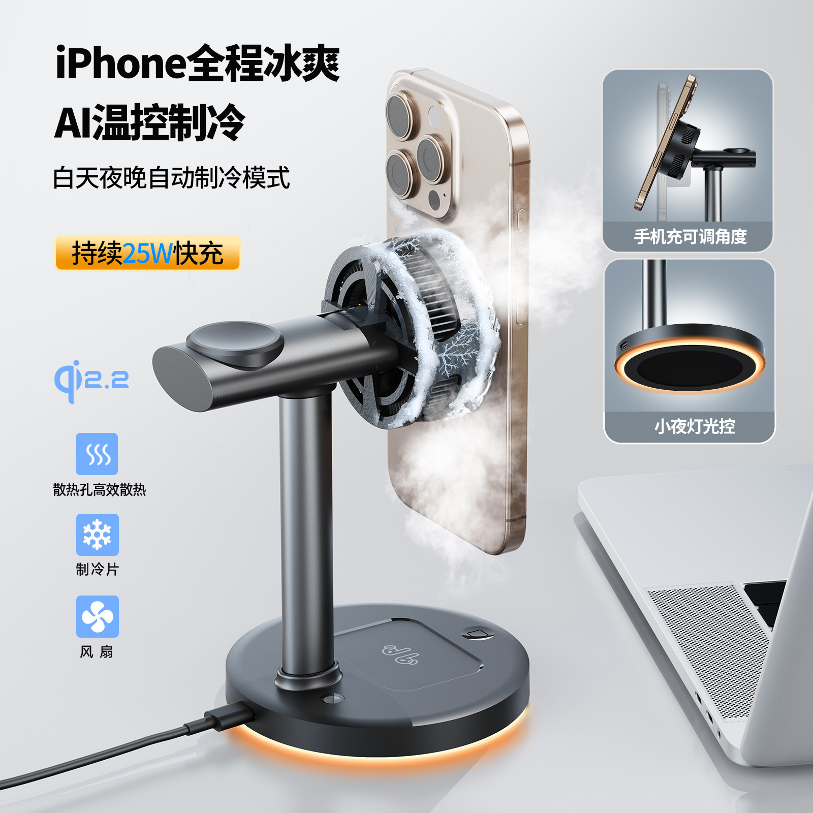 Qi2.2 New Product Vertical Four-In-One Magnetic Semiconductor Refrigeration Wireless Charging 25W Mobile Phone Holder Wireless Charger