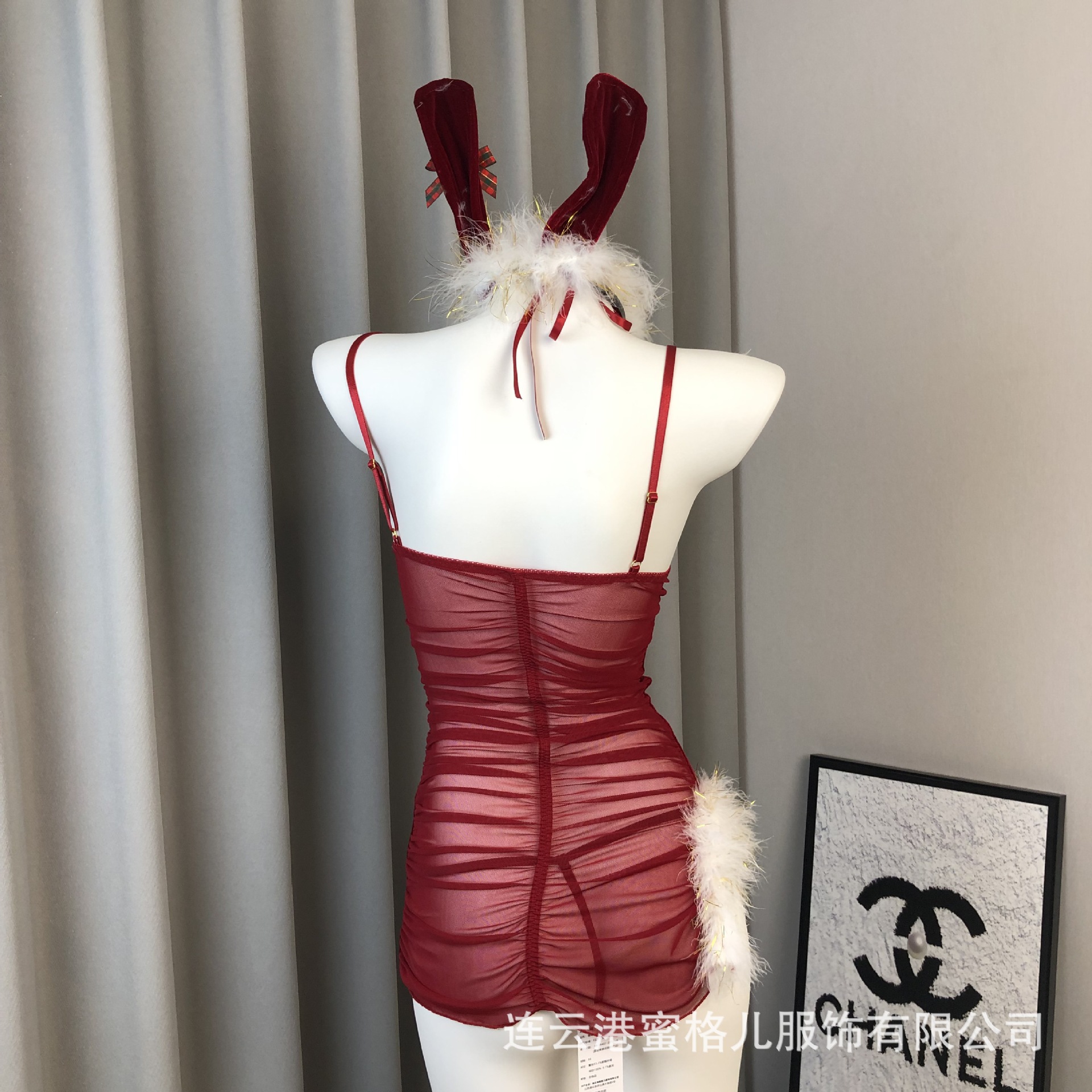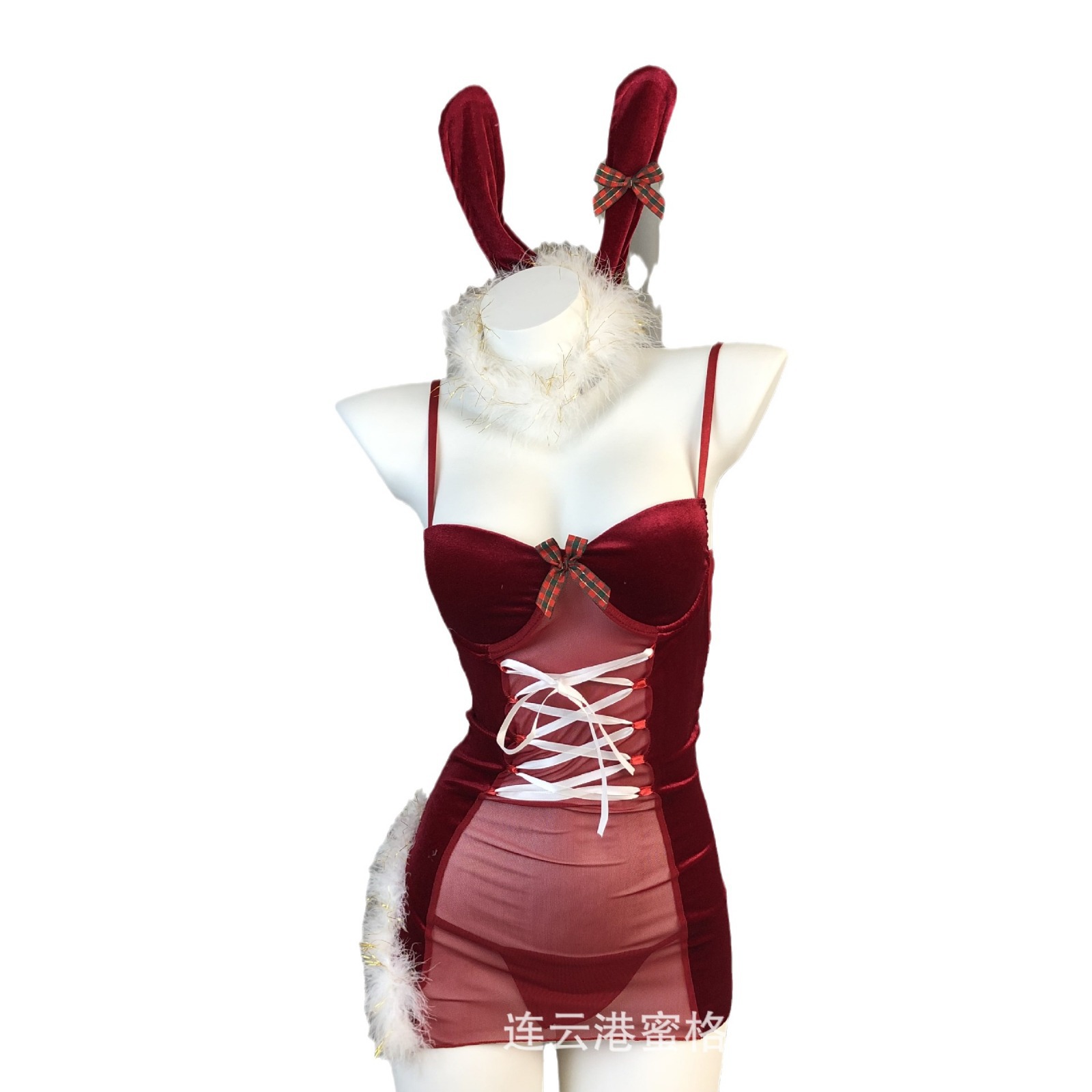 Rabbit Girl Cosplay Uniform Adult Lingerie Red Christmas Mood Role-Playing See-Through Set