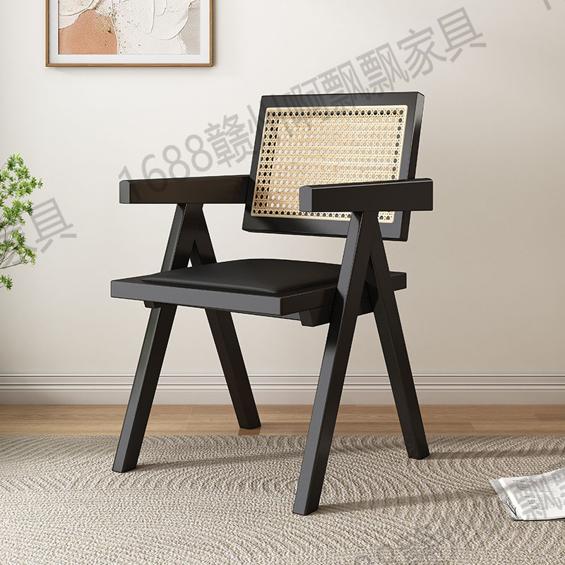 Rattan Chair Chandigarh Chair Thickened Home Nordic Japanese Style Backrest Chair Balcony Leisure Chair Solid Wood Dining Table and Chair