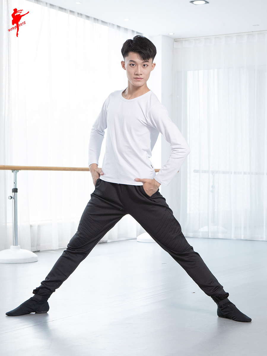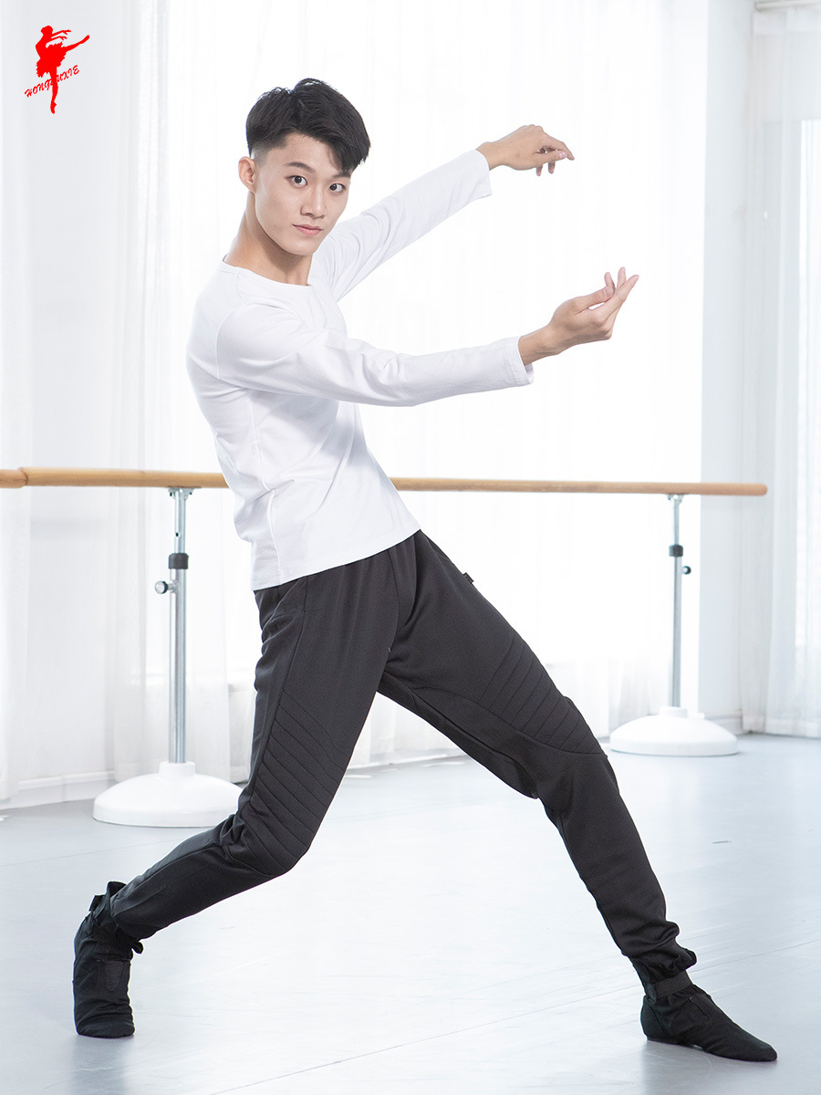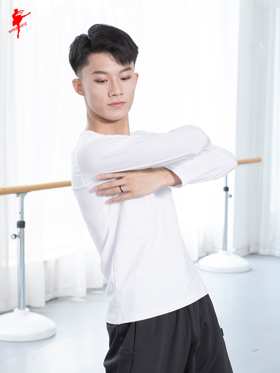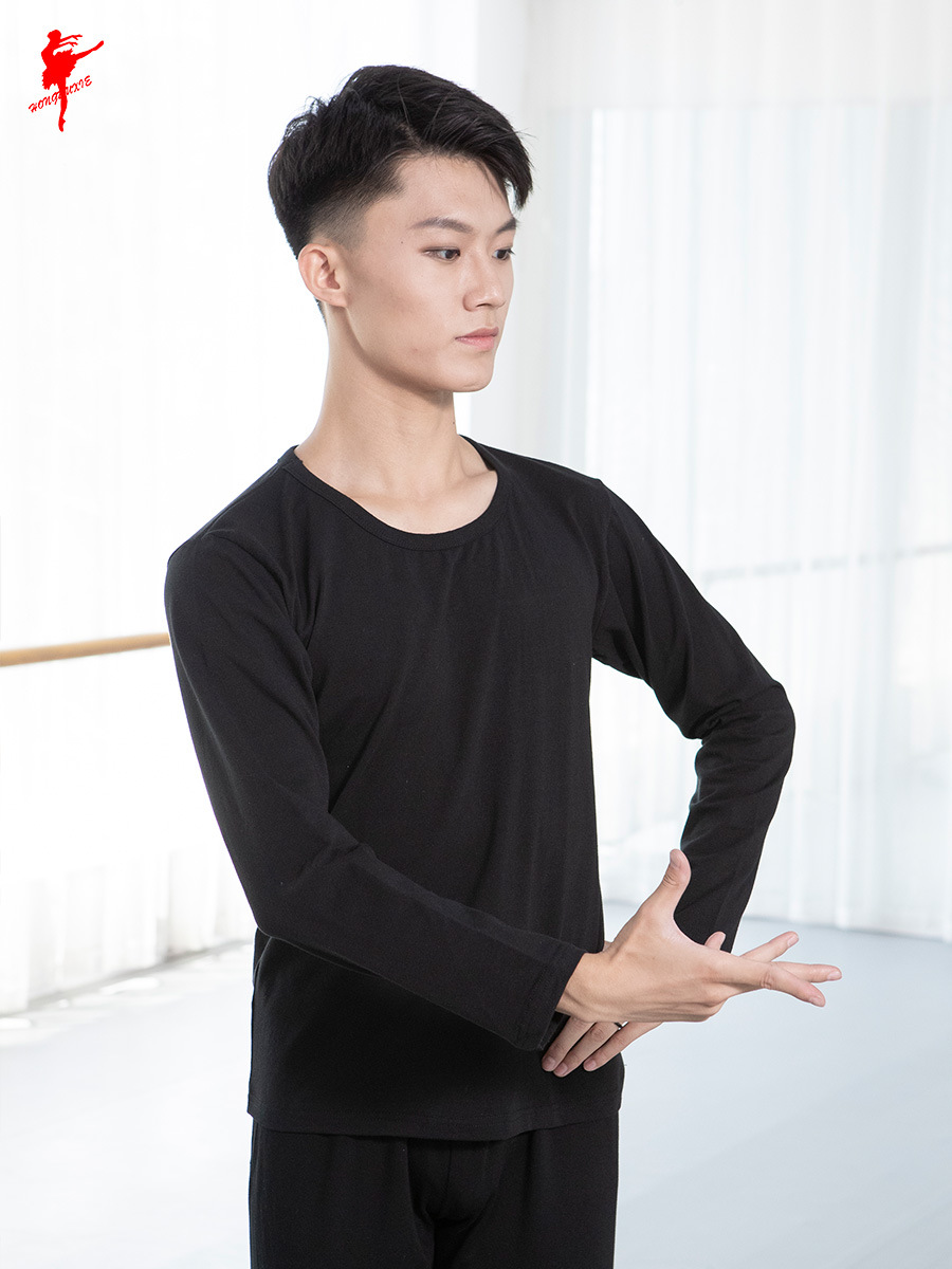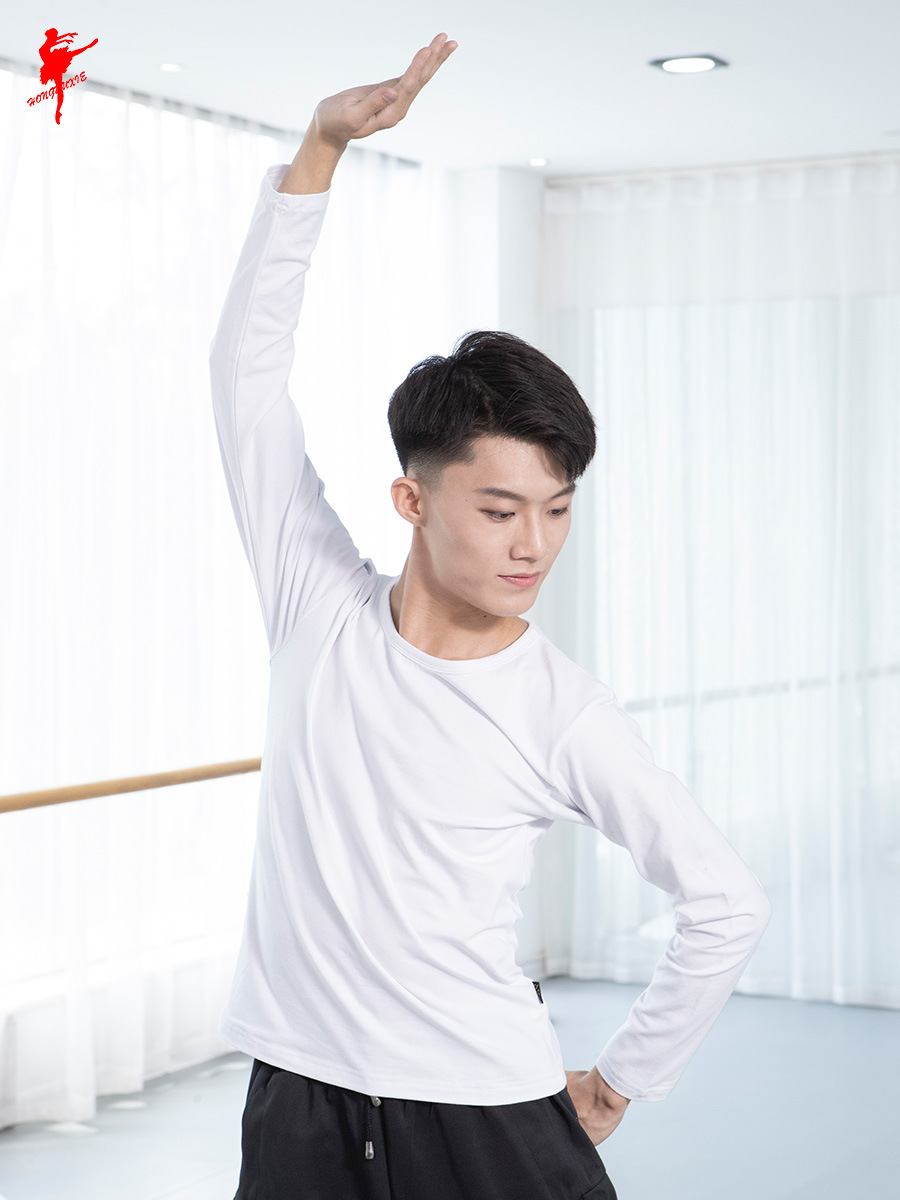 Red Dance Shoes Dance Clothes Thin Cotton Men's Long Sleeve Top for Adult Autumn and Winter Men's Dance Clothes 3828