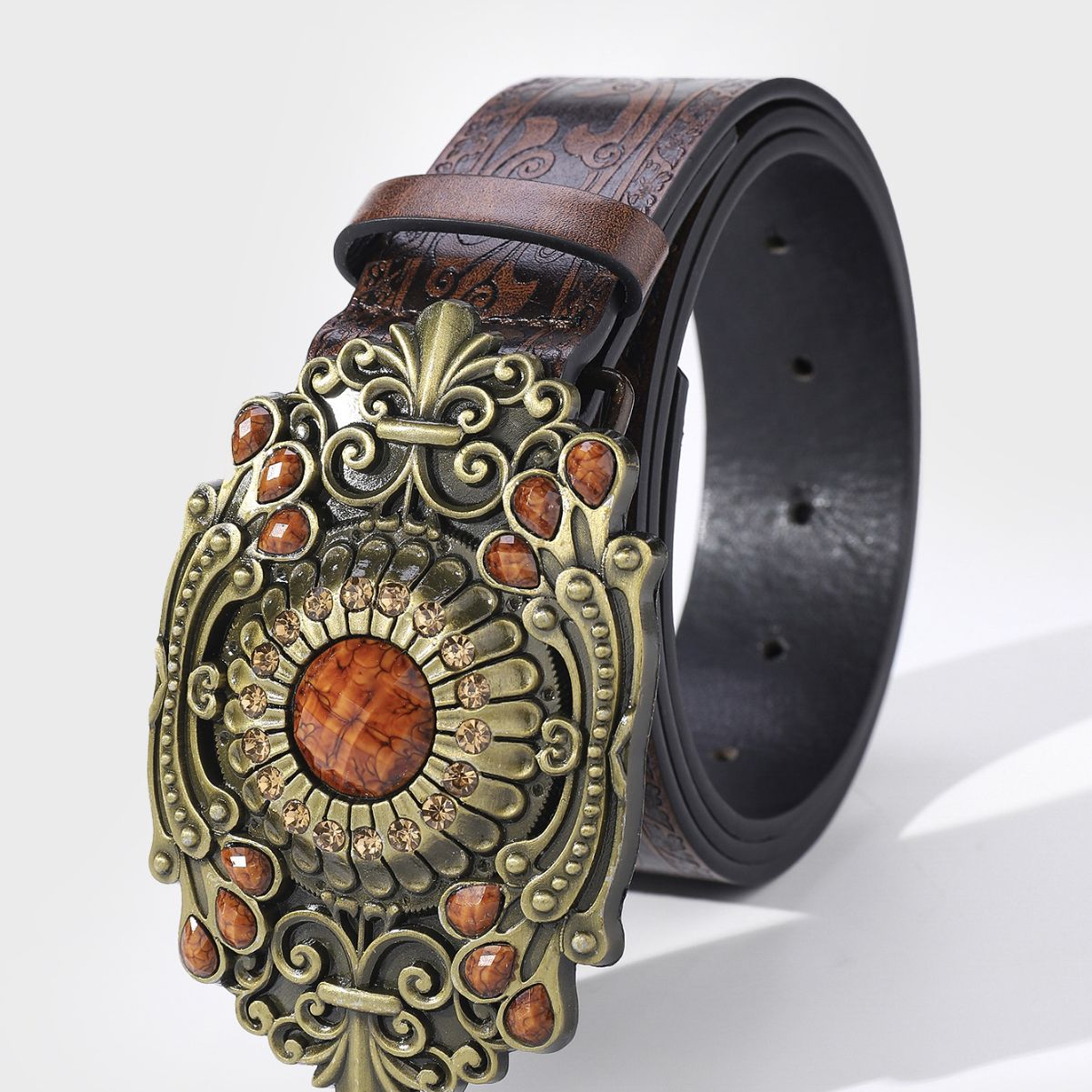 Retro belt men's artistic personality pu imitation leather belt ethnic style embossed all-Match belt factory wholesale