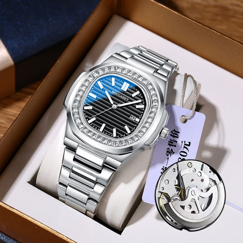 Retro brand parrot and conch watch men's anti-fake mechanical luminous waterproof square Men's blue hair generation