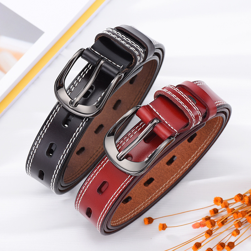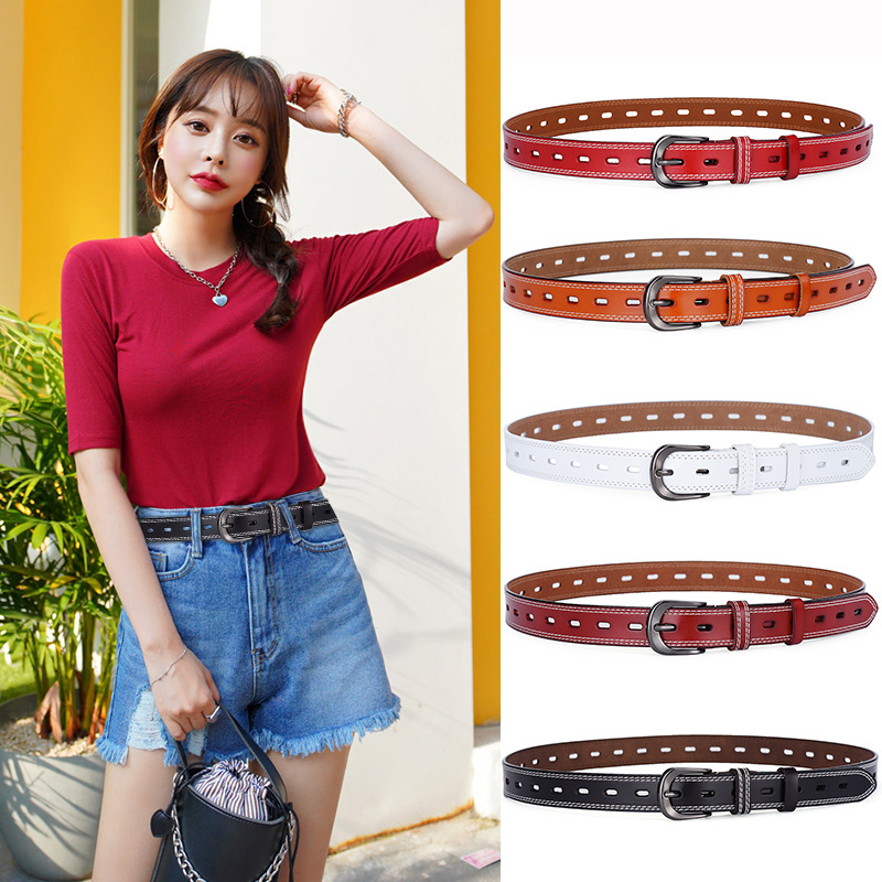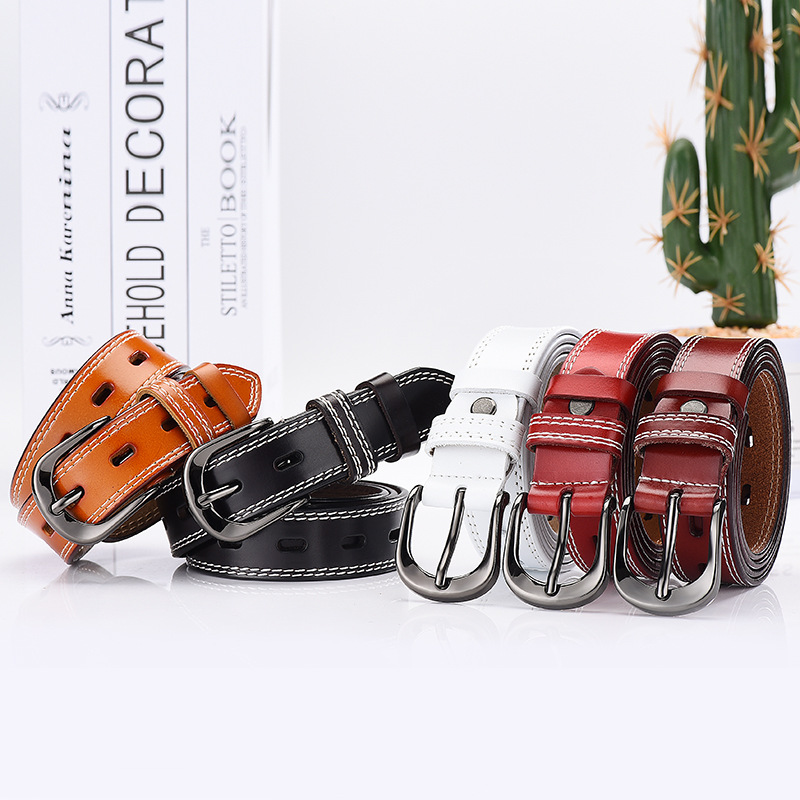 Retro pin buckle belt fashion hollow double-line men's and women's belt high imitation pants belt Korean style all-Match belt wholesale