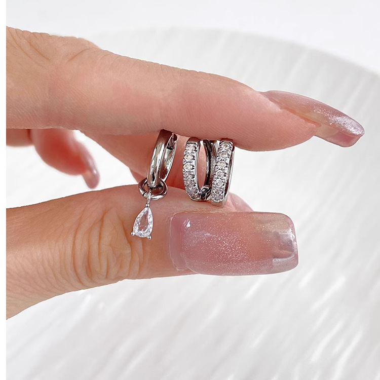 Retro Simple Micro-inlaid Ear Buckle Asymmetrical Water Drop Zircon Small Ear Ring Two-wear Simple Personality Exquisite All-match Earrings