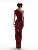 Rfm Extra Long Dark Red Pleated Waisted Asymmetrical Design Mesh Dress