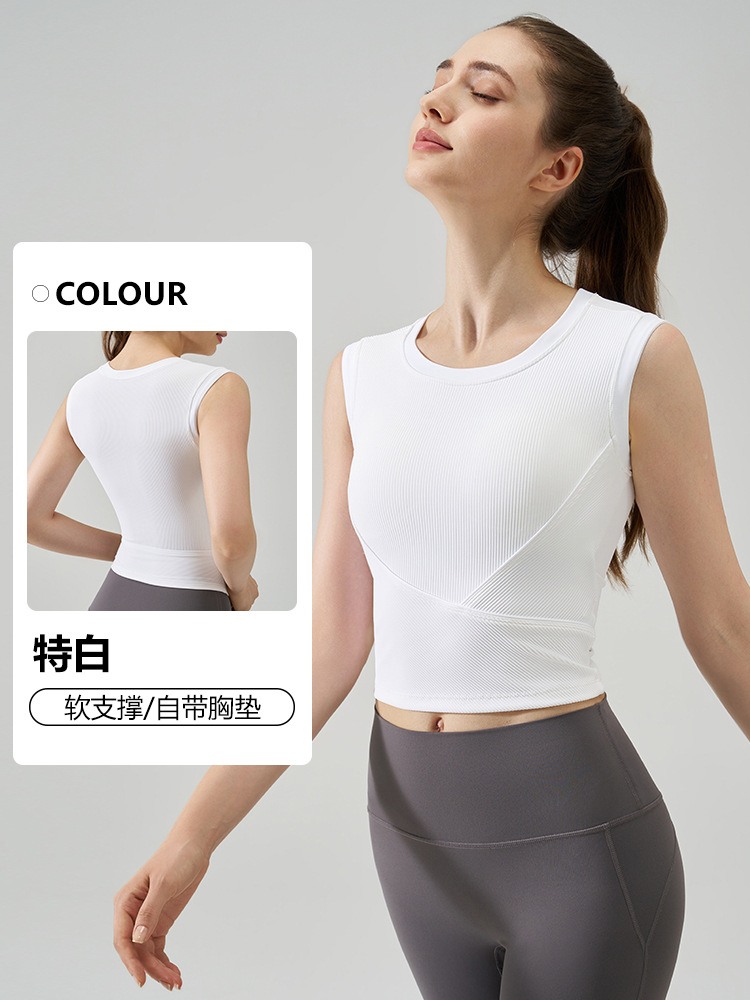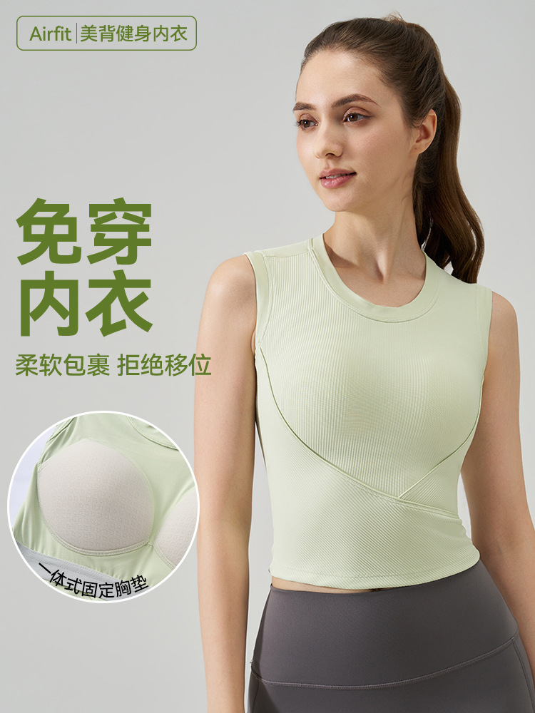 Ribbed Running Sports Vest Women's Summer with Chest Pad Not Running Cup Yoga Suit Top Sleeveless Beautiful Back Fitness Underwear